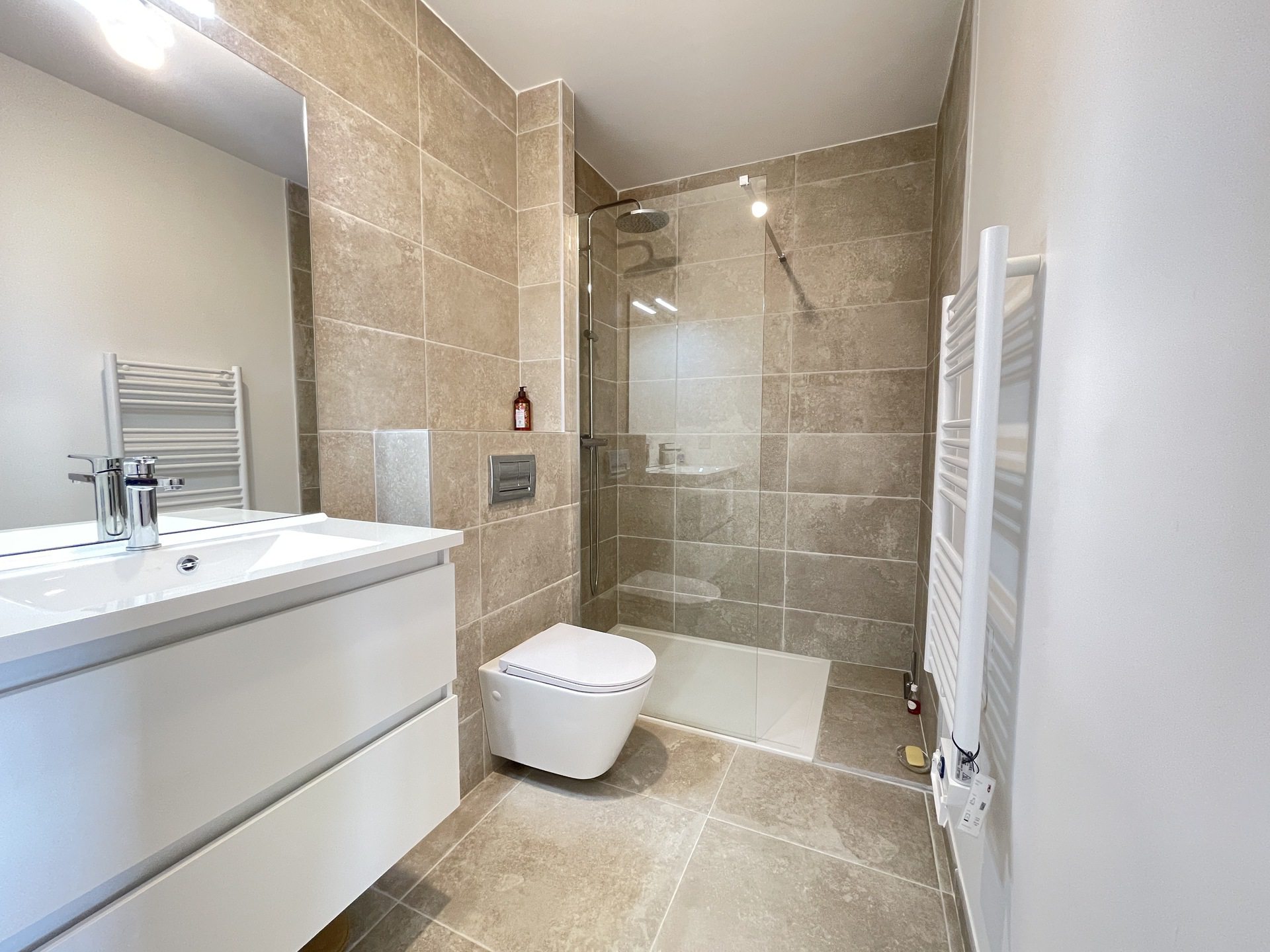 - Une salle d'eau avec douche a l'italienne et toilette