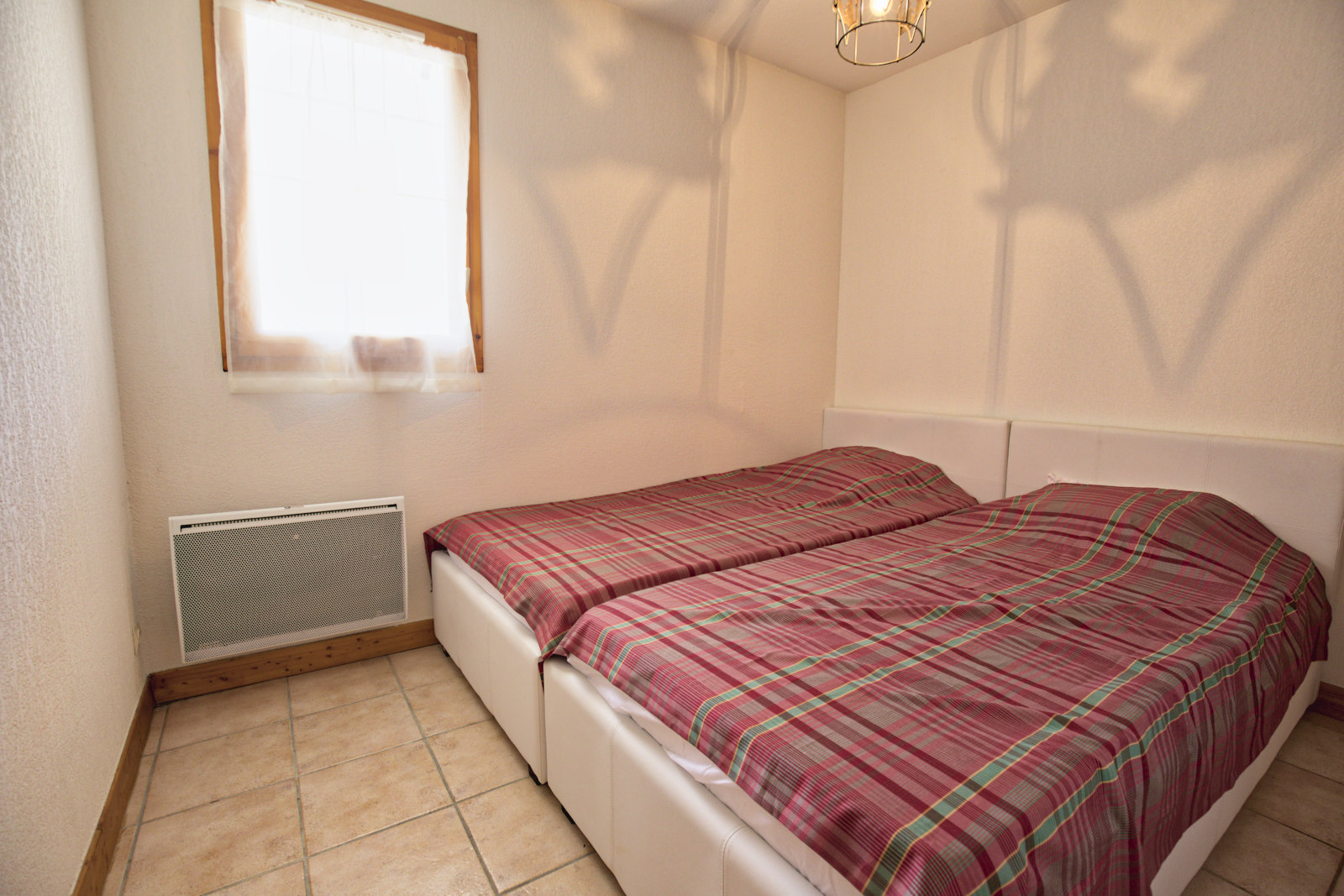 - Couchages : une chambre avec un lit double (140), 1 chambre avec deux lits simples (2x90), sejour avec 1 canape-lit deux personnes (160). Literie equipee de couettes.
