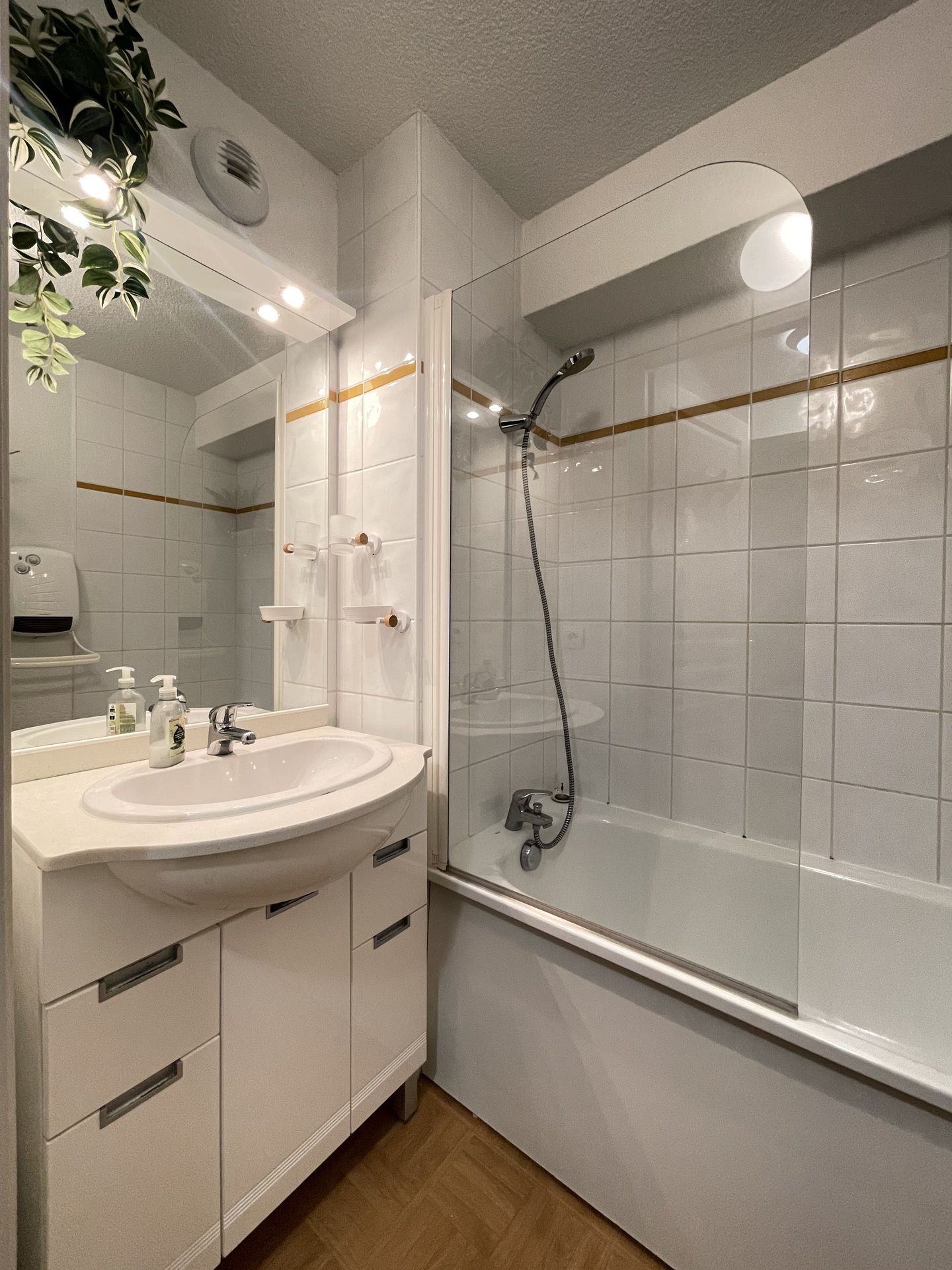 Appartement cosy de trois pieces, d'une surface d'environ 37 m2, ideal pour 4/6 personnes. Il se situe au 1er etage avec un balcon expose SUD/OUEST, vue Mont Blanc.