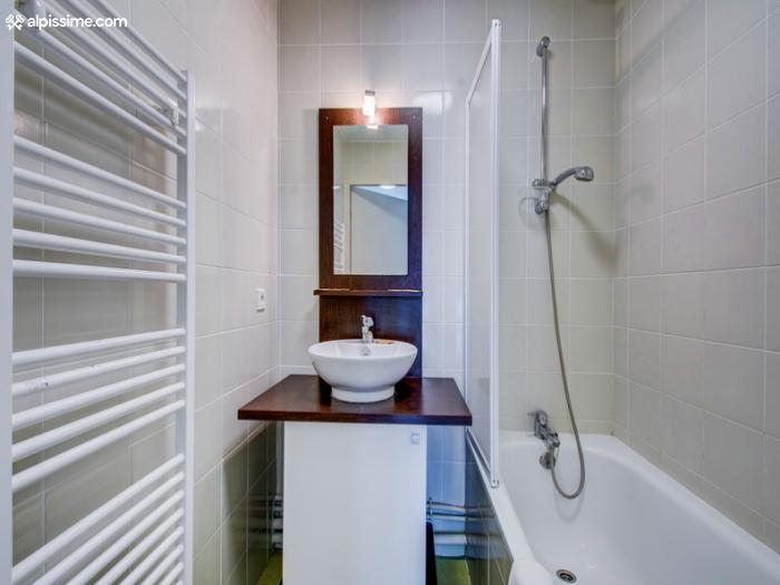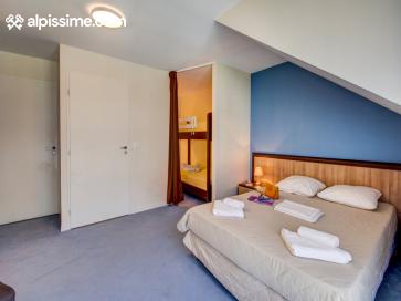 L'appartement de 2 pièces pour 6 personnes se compose d'un séjour avec canapé-lit convertible, d'une chambre accueillant un lit double ou deux lits simples (rapprochables pour former un lit double) et d'un coin montagne accueillant deux lits superposés. TV, Kitchenette avec plaques vitrocéramiques, réfrigérateur, lave-vaisselle, four micro-ondes, cafetière et grille-pain. Salle de bain avec baignoire ou douche, toilettes.