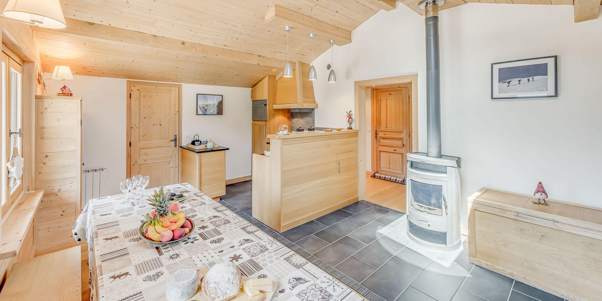 - 1 coin repas - adossee aux fenetres SUD, agremente d'un poele a bois.