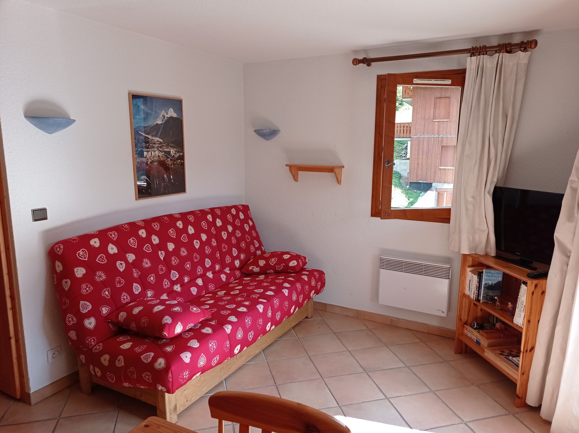 - sejour avec canape-lit 2 personnes (140x190) et couvertures, baie vitree donnant sur un grand balcon d'angle offrant une tres belle vue degagee sur le village et les montagnes.