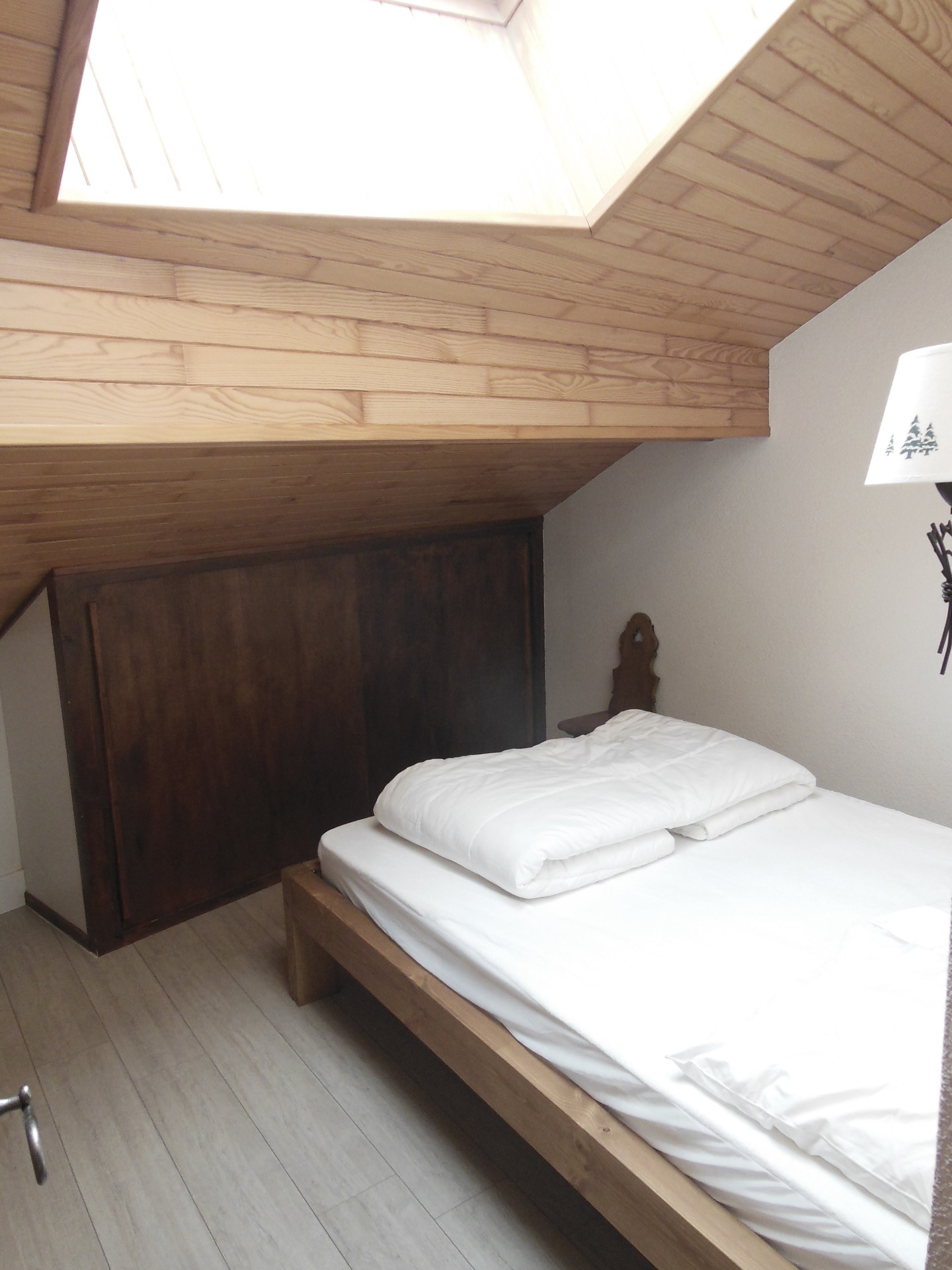 * une chambre avec un lit 2 pers. (140x190) + 1 lit 1 pers. (80x190), couvertures, avec velux