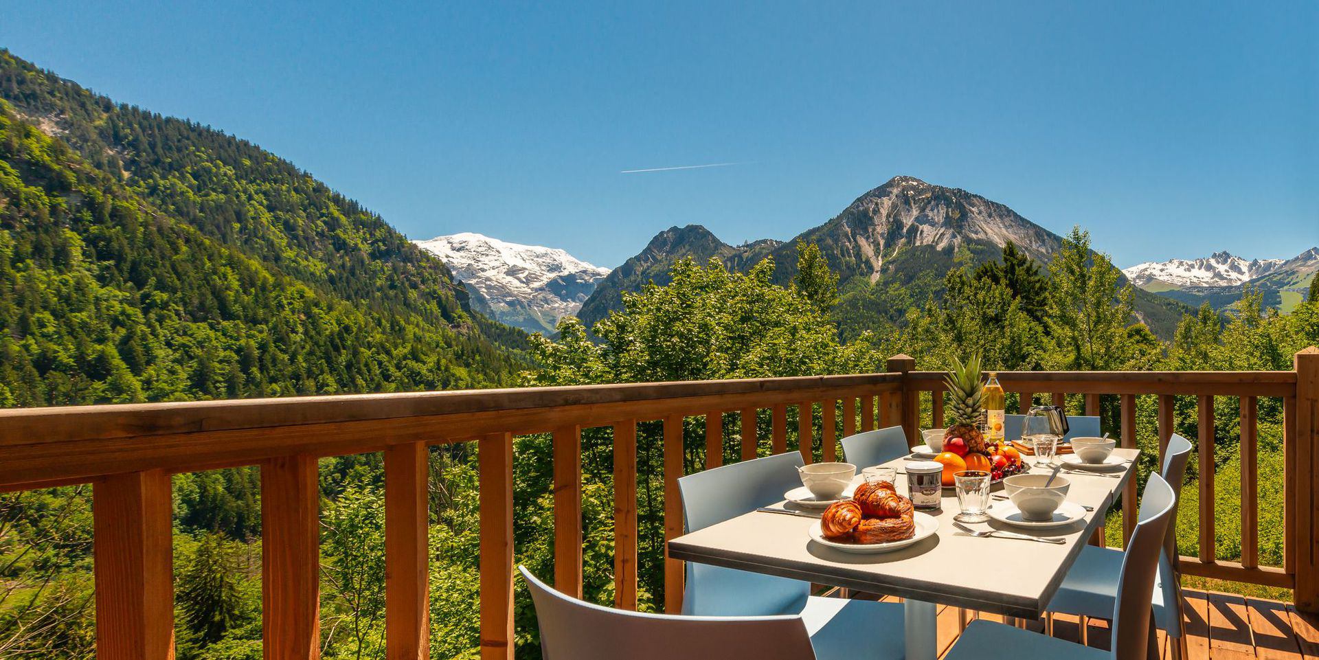 - 1 terrasse SUD - parquet bois - avec vue sur les glaciers de la vanoise et Courchevel, sans vis-a-vis