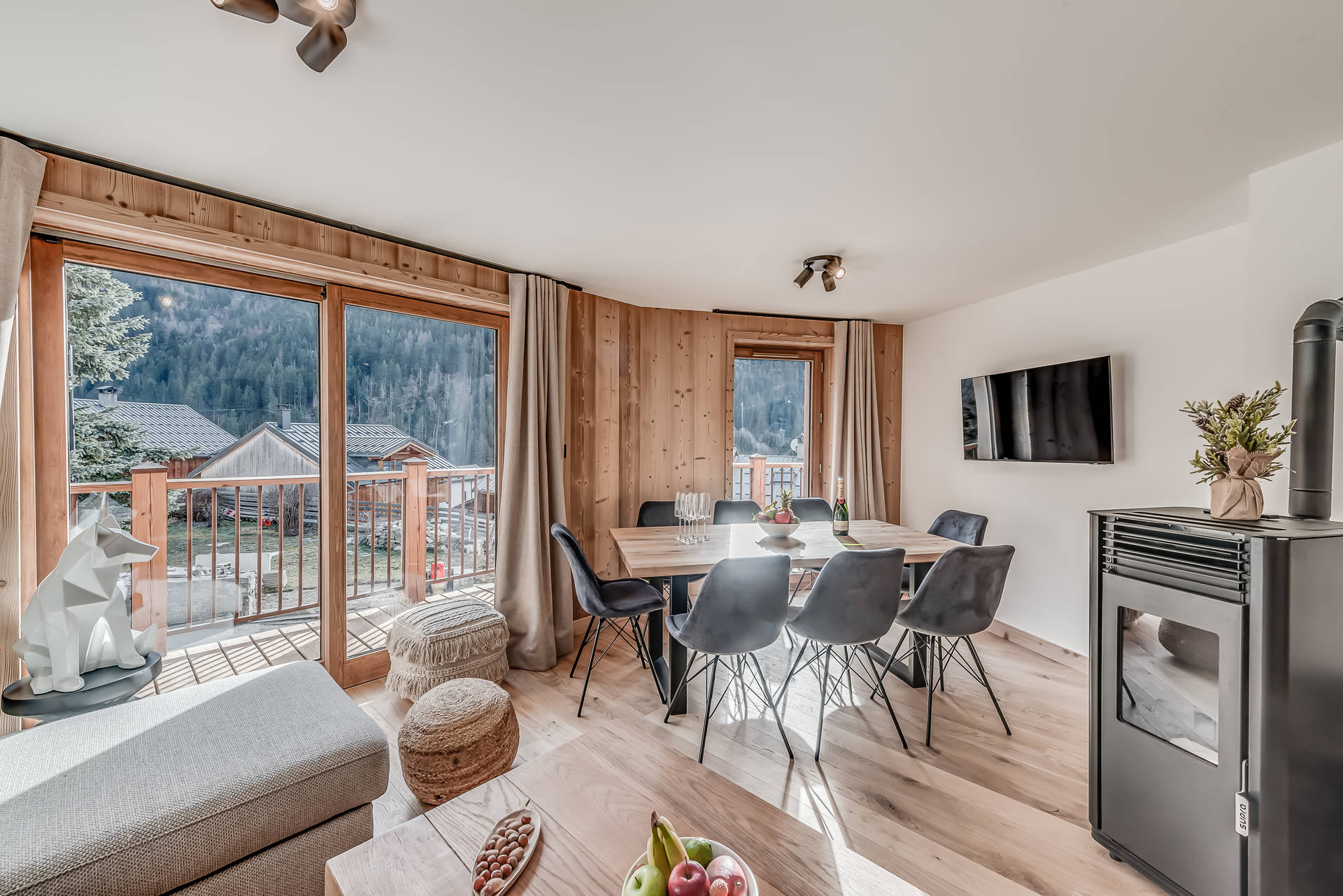 Ce bel appartement cosy en etage est compose d'une belle piece a vivre equipe d'un poele a granules, d'une cuisine toute equipee et dispose d'un balcon de 8.70m2 expose Est, amenage et sans vis a vis.