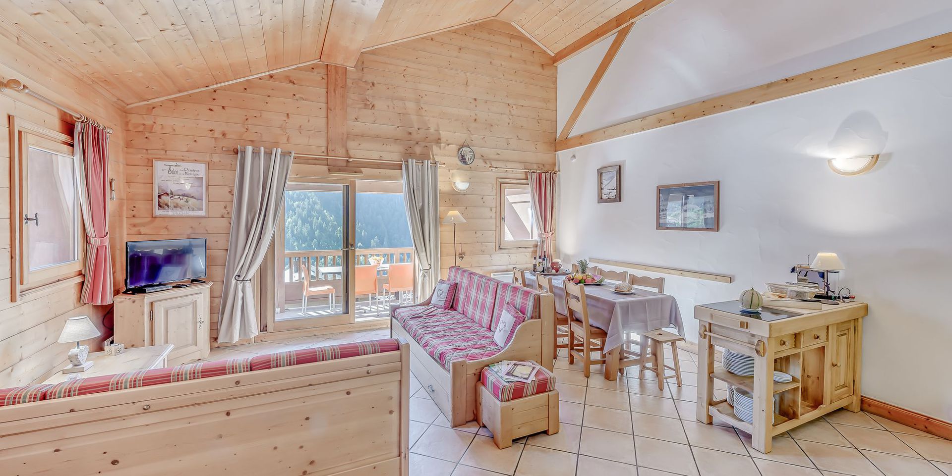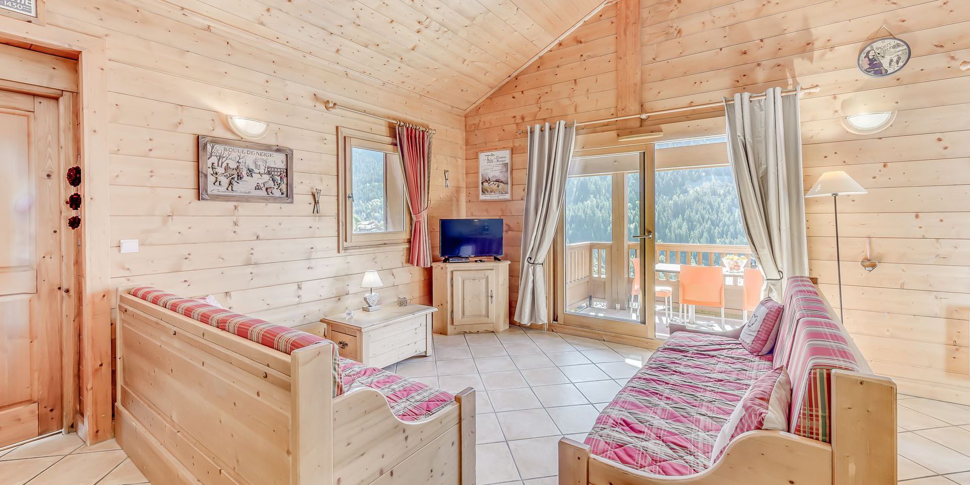 - Sejour - coin repas et coin salon avec 2 canapes - lits (80x190), television, sortie sur balcon SUD.
