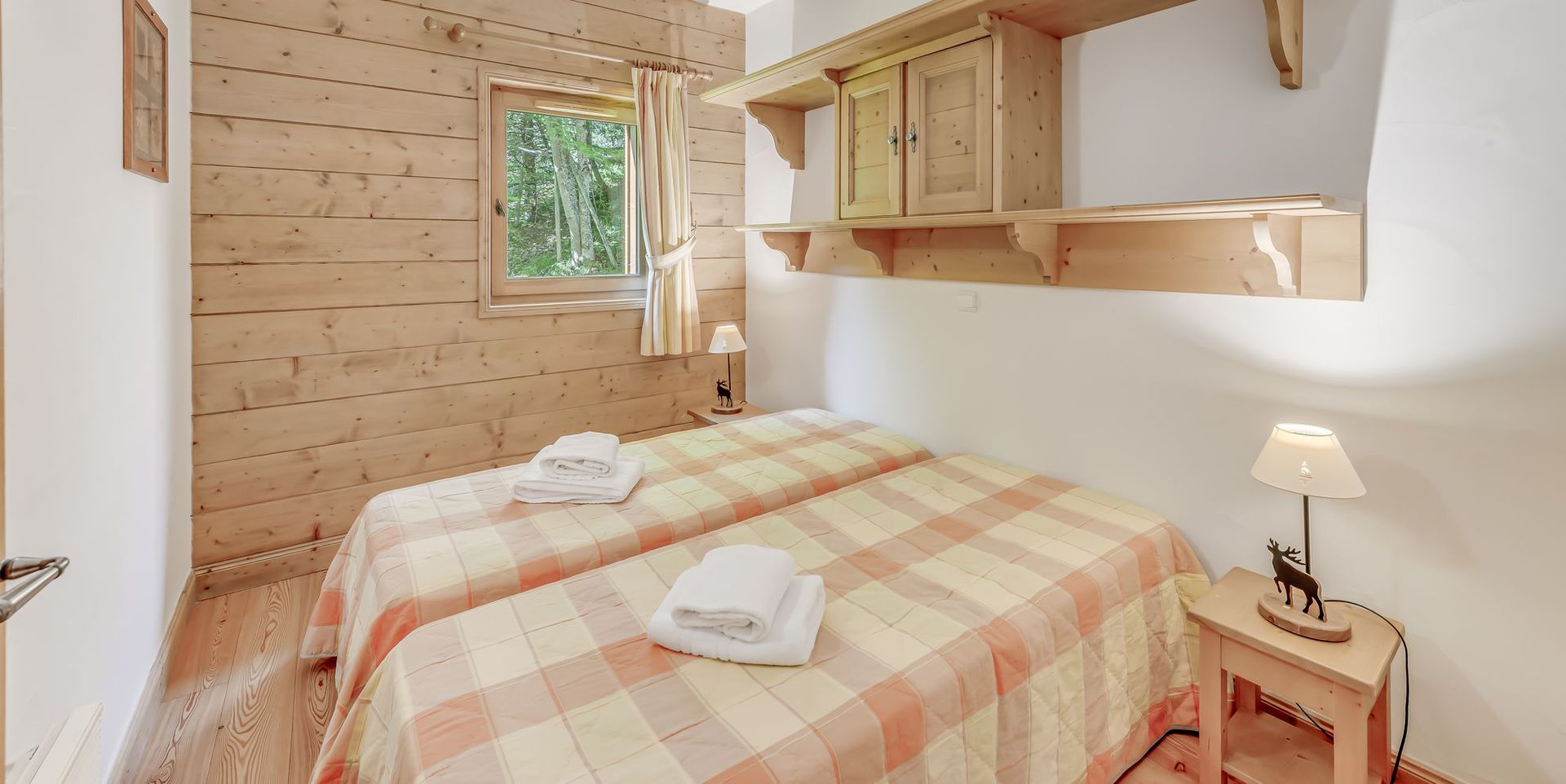 - 1 chambre OUEST avec 2 lits 1 personne avec couette, rangements et fenêtre,