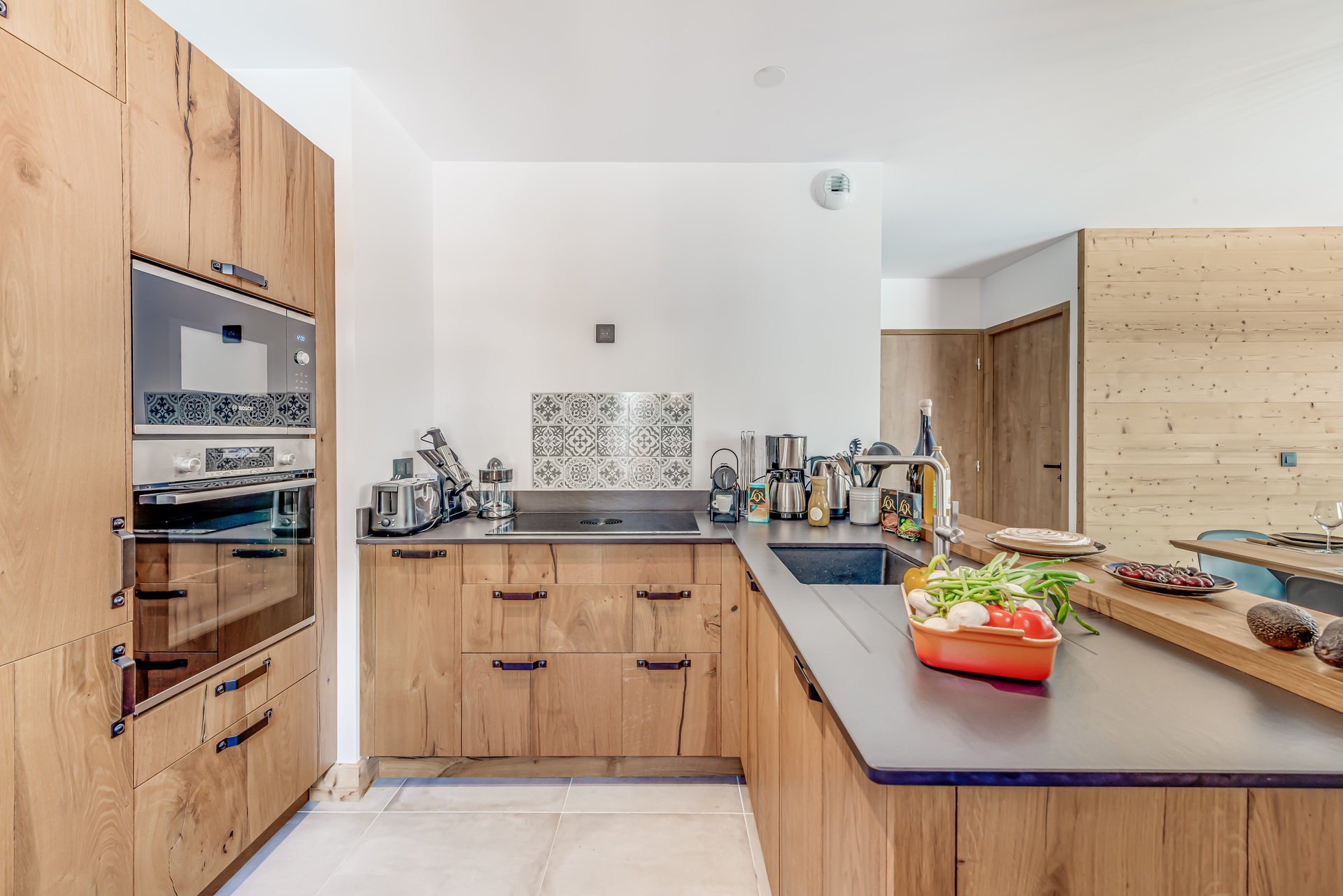 - 1 Cuisine equipee ouverte sur le sejour avec refrigerateur, lave-vaisselle, plaques de cuisson a induction, four, micro-ondes, Machine a cafe Nespresso, bouilloire, grille-pain