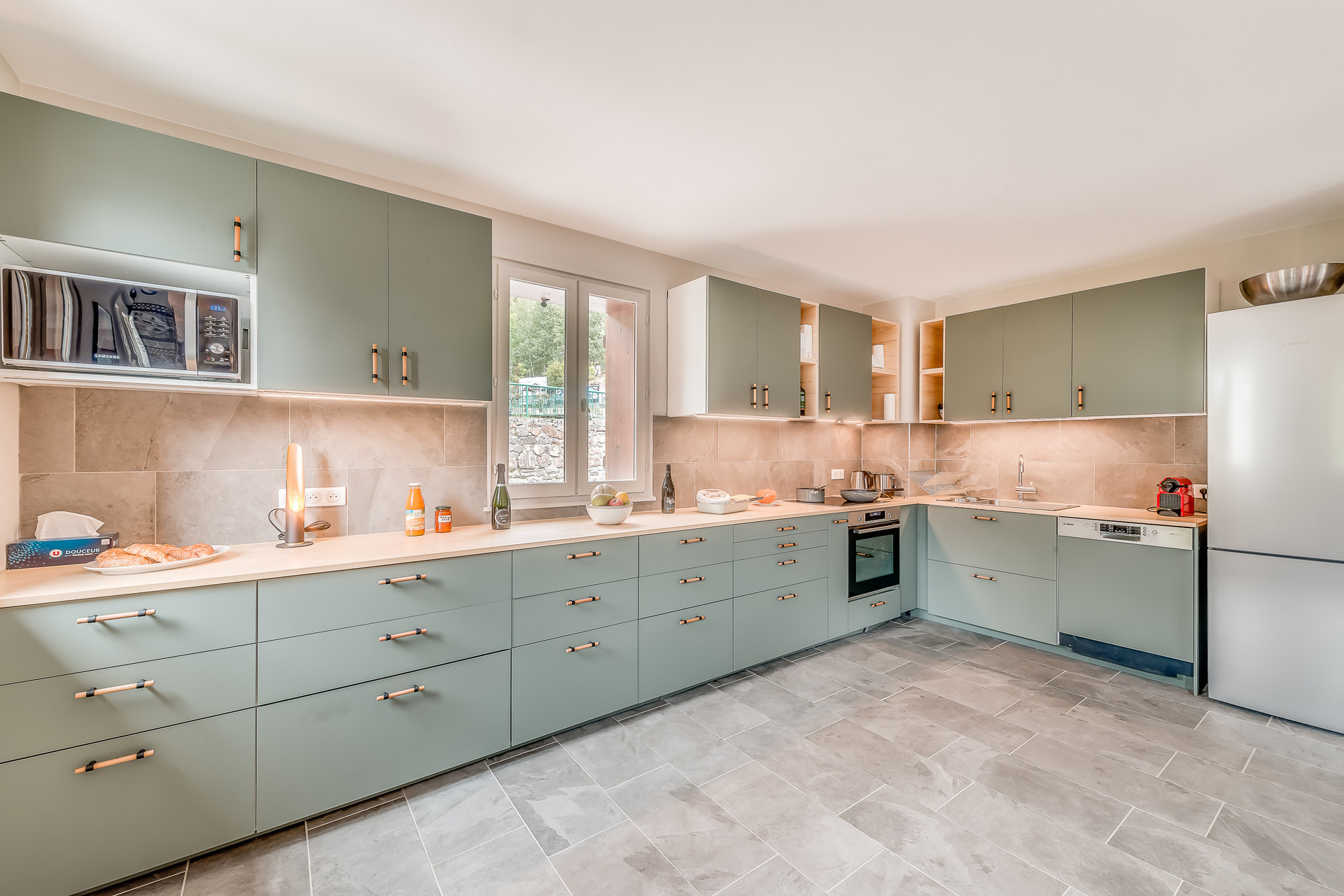 - 1 cuisine indépendante toute équipée: lave-vaisselle, four, micro-ondes, plaques de cuisson vitrocéramiques, grand réfrigérateur/congélateur