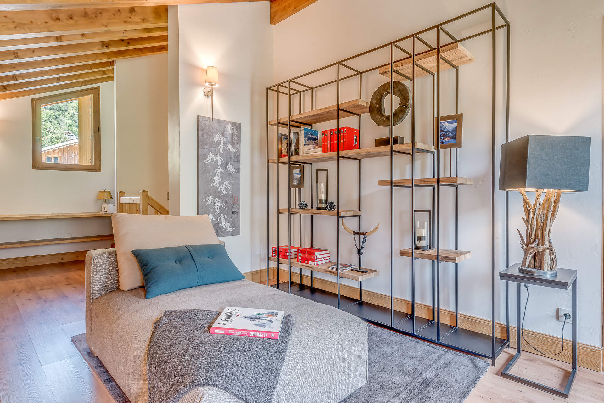 - 1 mezzanine ouverte sur le salon avec 2 chauffeuses-lit, coin bureau, donnant sur balcon sud