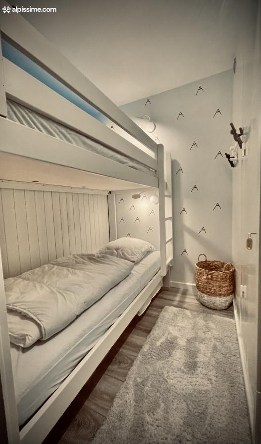 Ce dernier est composé d’une entrée avec cuisine intégrée, d’une salle de bain / toilette, d’un espace indépendant comprenant un lit superposé (matelas 80x180cm) et d’une pièces principale équipée d’un canapé-lit permettant aisément un couchage qualitatif pour 2 adultes. Vous profiterez d’un balcon exposé ‘sud-est’ et un casier à ski individuel est également à votre disposition dans la résidence.