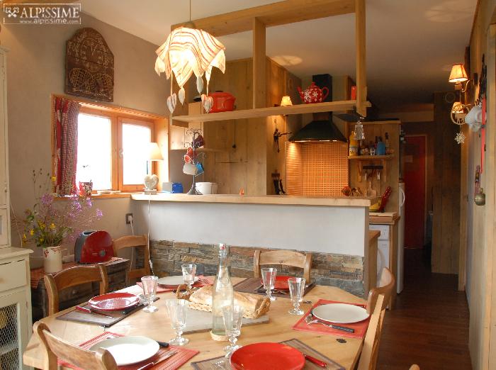 Résidence LE GRAND ARBOIS. Rénovation totale de 2 appartements réunis pour vous offrir de belles pièces à vivre, salon ouvert sur salle à manger, cuisine américaine, très calme, décoration soignée ambiance chalet, en plein cœur de la station. Vue exceptionnelle sur la vallée et coucher de soleil, exposition sud-ouest.