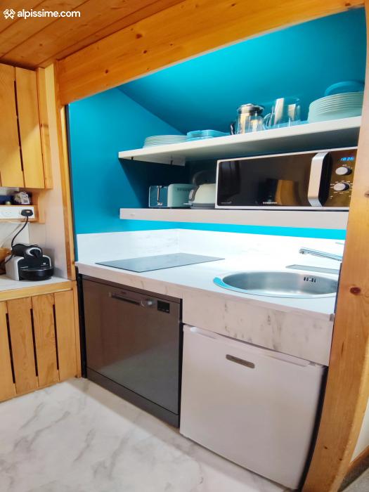 Appartement très bien équipé : sèche chaussures de ski, électroménager et vaisselle neufs (plaque induction, frigo, lave-vaisselle silencieux, TV, micro-ondes, appareil à raclette/fondue, appareil à croques/gaufres, bouilloire, cafetière Nespresso et cafetière à piston, grille-pain), sèche-cheveux.