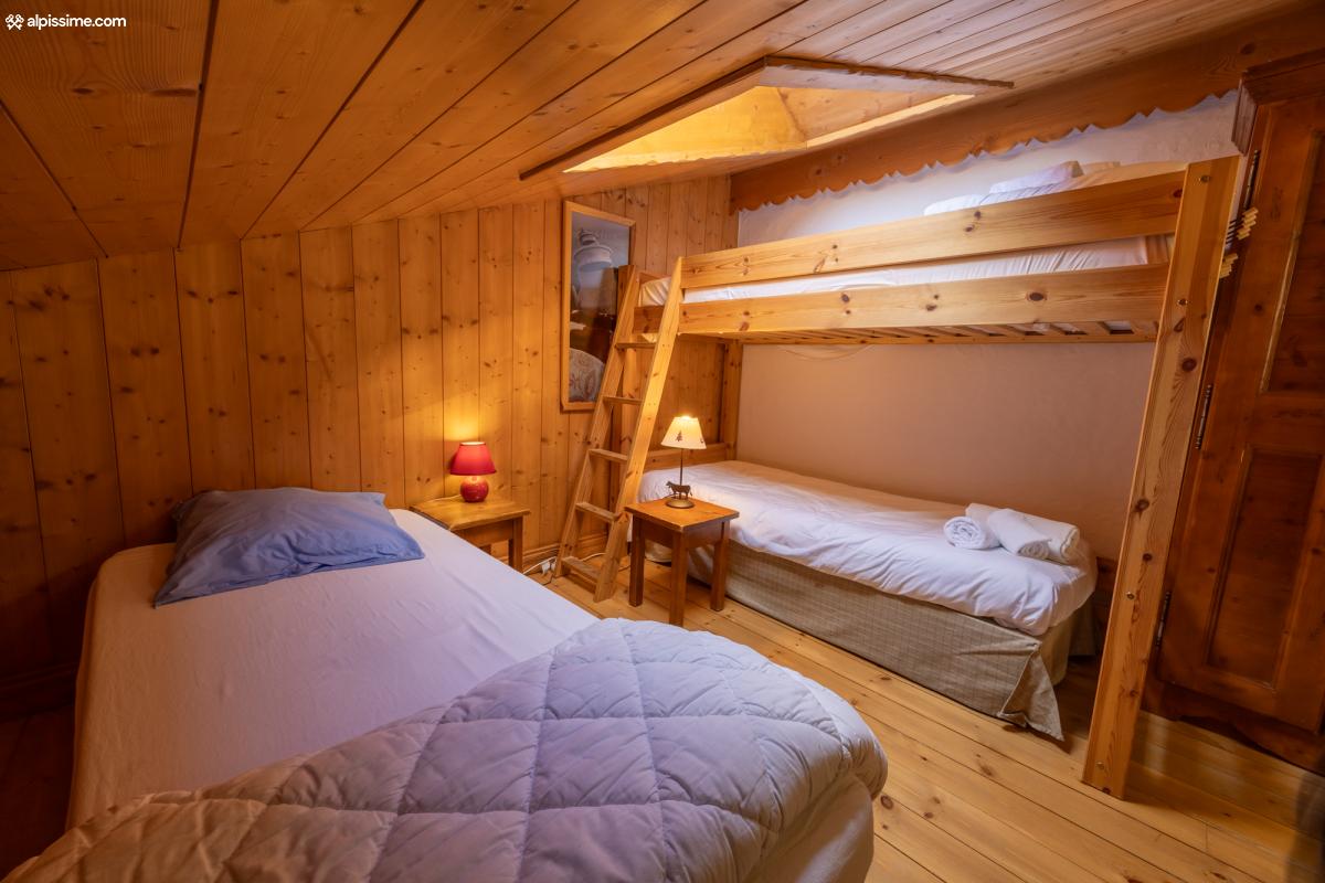 - En sortie d'escaliers, une chambre accueillant un lit simple ainsi que 2 lits superposés