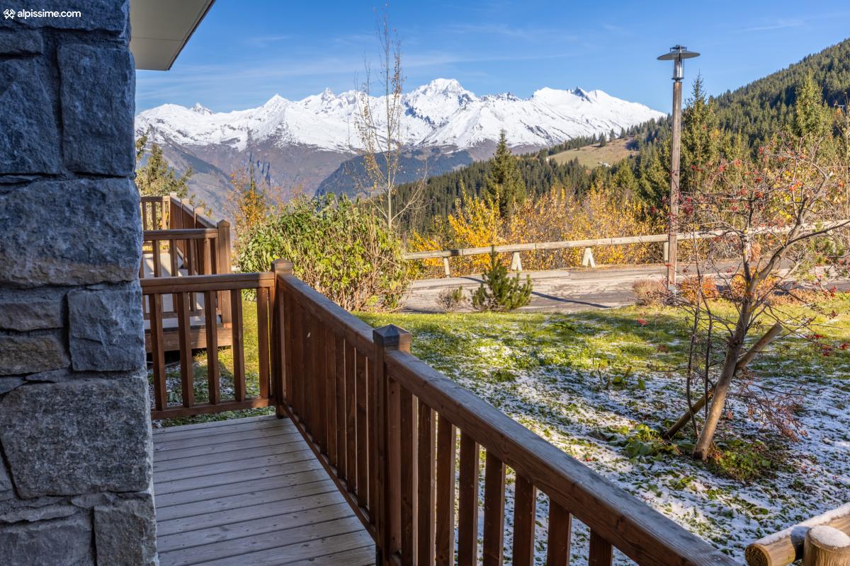 – Une pièce de vie avec cuisine ouverte sur le séjour, terrasse donnant sur l’extérieur et vue imprenable sur le Mont Blanc