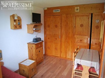 Les arcs 1800 -  Beau Studio 27m2 –Meublé 3 cristaux Paradiski.  Très bien situé au village du charvet à moins de 50m des pistes. Départ et retour skis aux pieds. Tous commerces, office de tourisme, vente forfaits dans le village au pied de la résidence.  L’appartement avec balcon et vue sur le mont blanc est équipé tout confort : lave vaisselle, micro-onde, four, tv, lecteur DVD et CD, lave linge, salle de bain avec sèche serviette, wc dans pièce indépendante, coin montagne isolé avec lits superposés, salon séparé par porte coulissante avec un canapé lit (lit gigogne) l’ensemble dans un décor chaleureux.