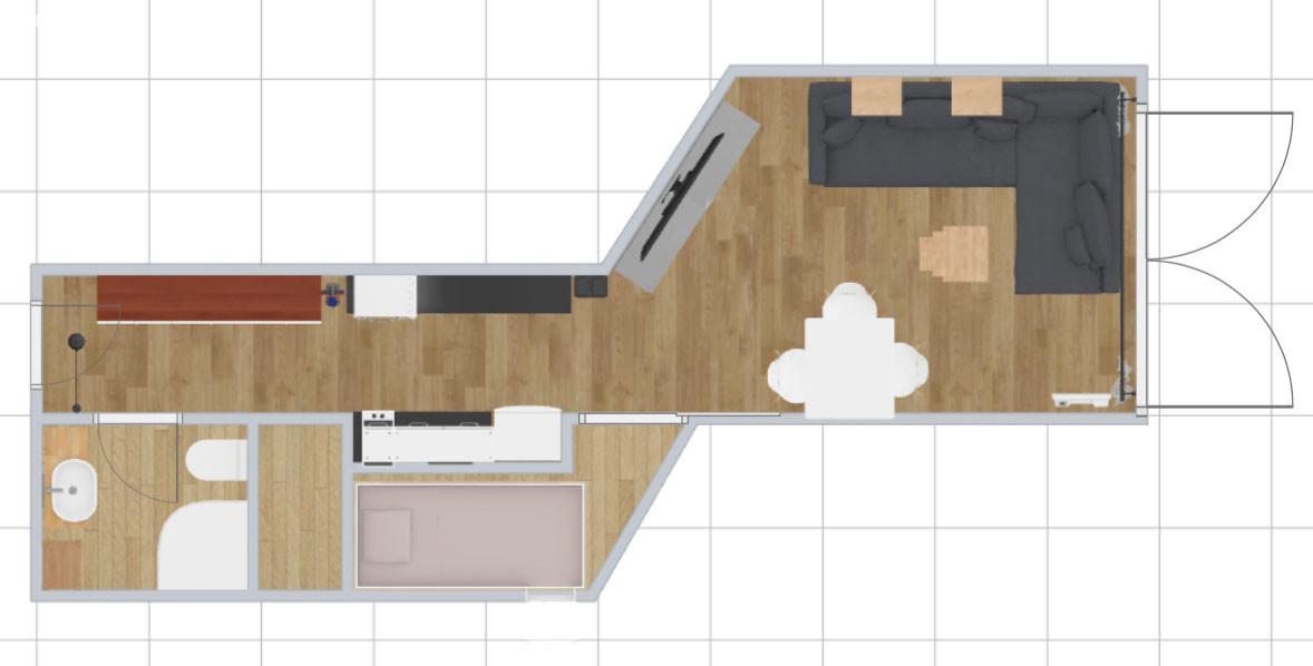 Ce logement peut accueillir 4 personnes. Il comprend un salon composé d’un canapé lit 2 personnes, et d’un canapé lit 1 personne, ainsi qu'un coin couchage dans une alcôve avec 2 lits superposés une place.