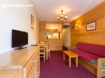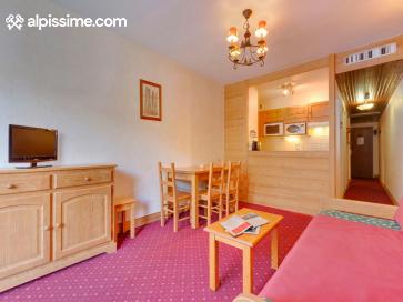 Ce studio se compose d'un séjour avec canapé-lit et d'un coin montagne accueillant 2 lits superposés.