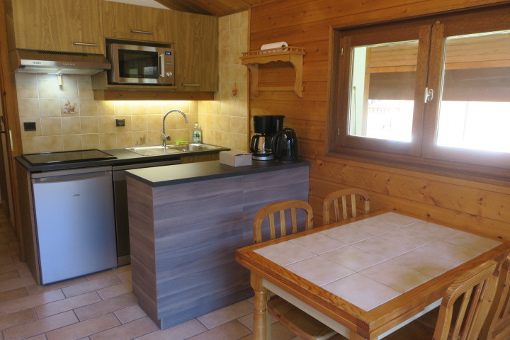 La cuisine est equipee d'une plaque de cuisson, d'un micro-ondes, d'une cafetiere a filtre, d'une bouilloire, d'un lave-vaisselle, d'un appareil a raclette ainsi qu'un appareil a fondue.
