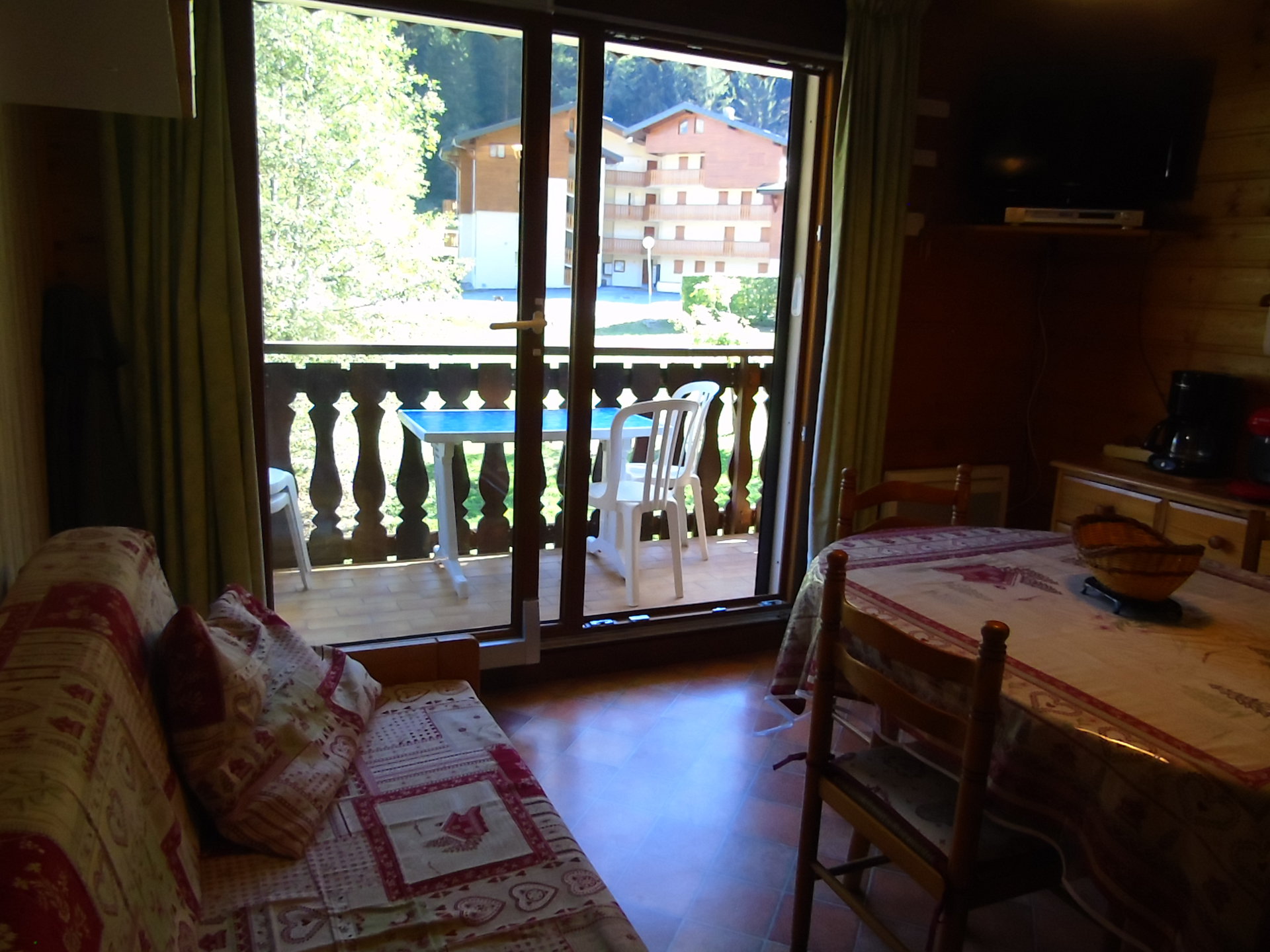 A l'entree, un coin montagne avec 2 lits superposes, une chambre avec un lit double, une salle de bains, un WC separe, un sejour, une cuisine, et un balcon expose sud-est.