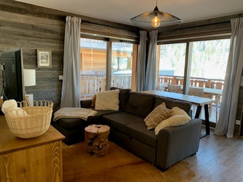 Dans le sejour, un canape convertible avec a disposition une connexion internet, une smart tv avec acces a NETFLIX et une enceinte Bluetooth, ainsi que plusieurs livres et jeux pour divertir vos soirees apres une belle journee de ski.