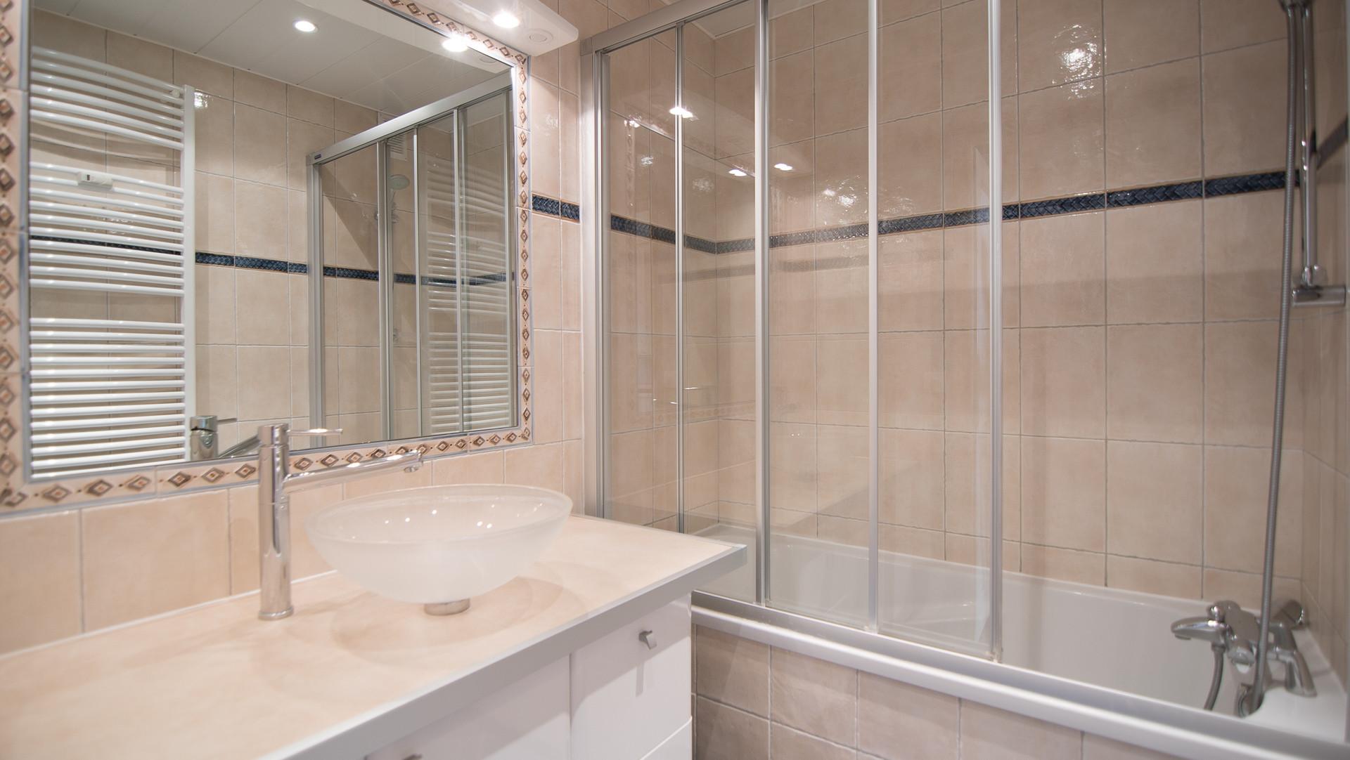 Sanitaires : salle de bain avec baignoire, WC séparés.
