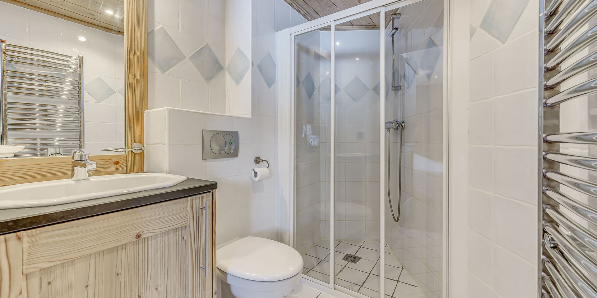 - 1 Suite parentale SUD avec lit double, avec sa salle de douche attenante avec meuble vasque, WC et radiateur seche serviettes