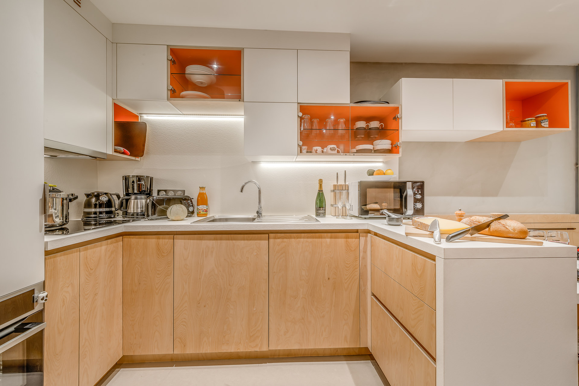 - Cuisine entierement equipee : 3 plaques vitroceramique, refrigerateur, four combine micro-ondes, lave-vaisselle, vaisselle neuve, ustensiles de cuisine, bouilloire, cafetiere et grille pain. Cuisine en liaison avec la table repas.