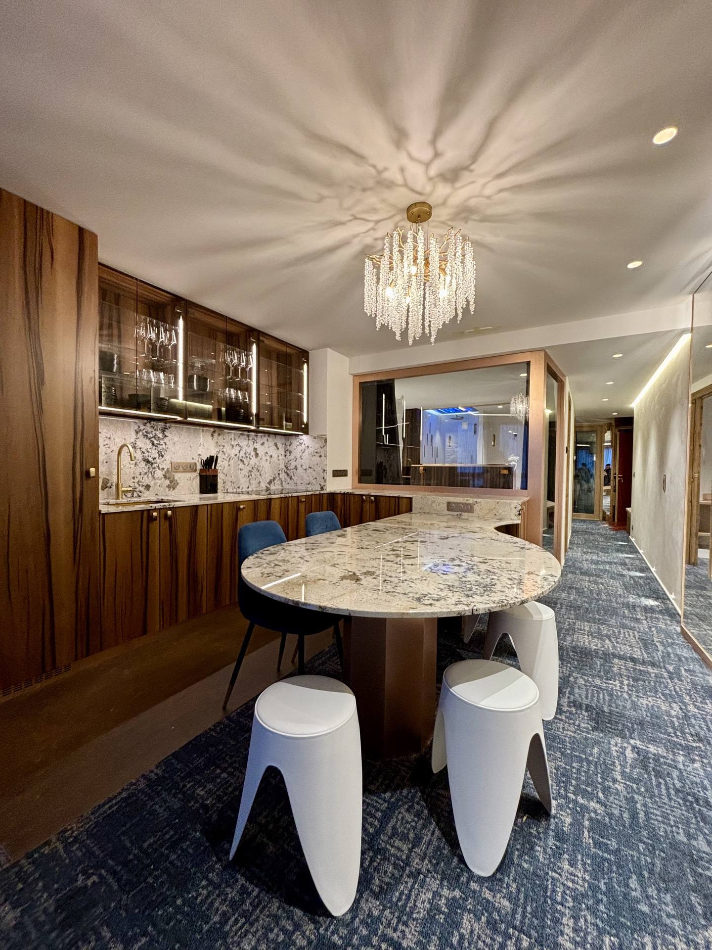 PALAFOUR 102 - "LE GRAND BLEU" a fait l'objet d'une renovation complete de mai 2025 a octobre 2025. Il est devenu un tres beau bien de vacances, finement travaille au niveau de ses espaces, de ses equipements et de ses matieres (vitrages, miroirs, tables de pierre, moquettes bleutees, TV connectees, enceintes de sonorisation...) qui capte la lumiere du Lac de TIGNES, et la fait entrer jusque dans les pieces arrieres.