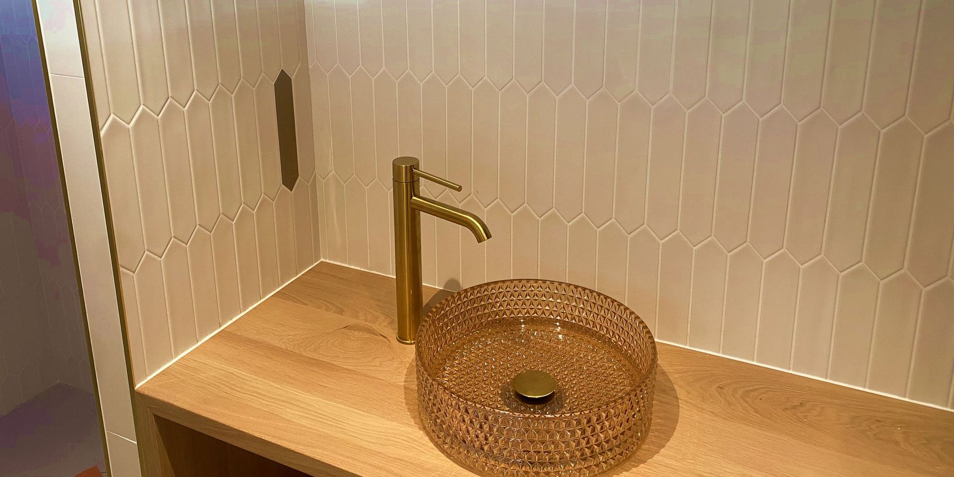 1 salle de bains , avec douche a l'italienne, meuble vasque, radiateur seche-serviette, WC suspendu.