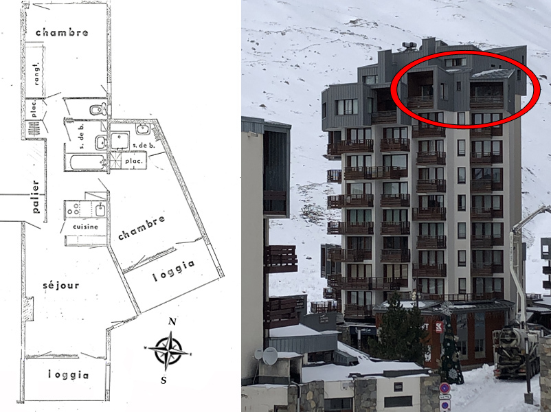En plein centre du Val Claret, trois pièces (2 chambres) de 70 m² au 8ème étage avec ascenseur et une place de parking (Sefcotel).