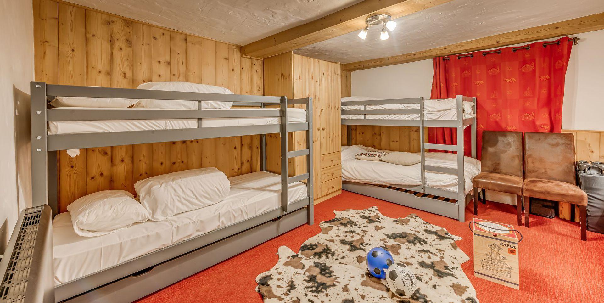 - Chambre 2: orientation SUD, chambre enfants, 2 fois 2 lits superposes (+ 2 lits BB), sol moquette.
