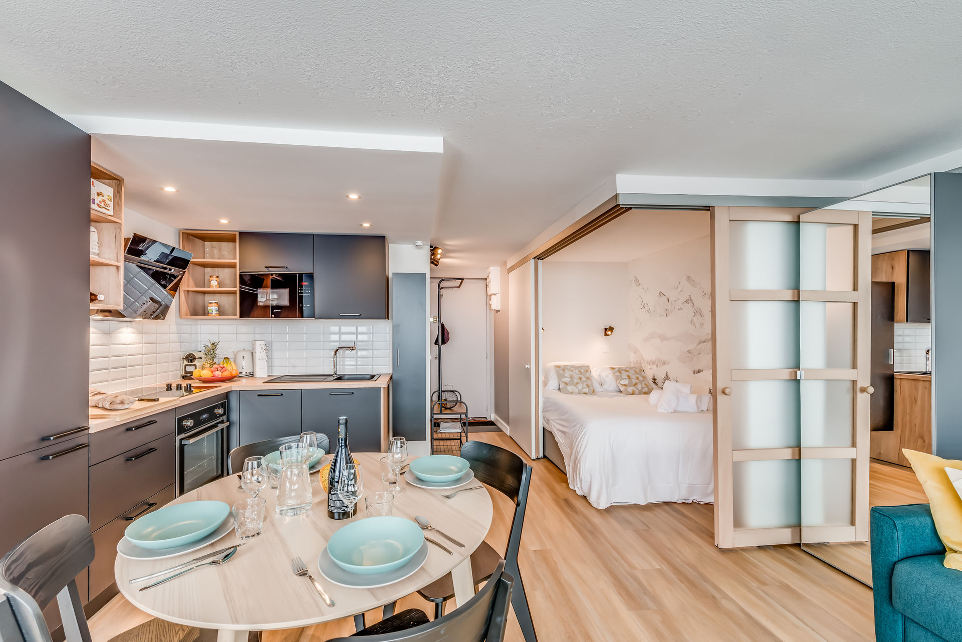 - Alcove avec lit double et cloison coulissante