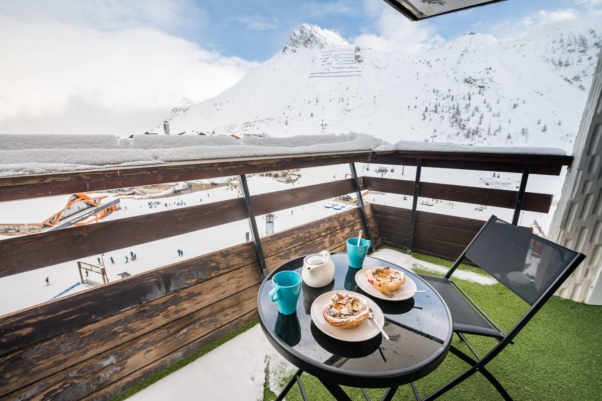 entierement renove. 10eme etage. Balcon expose Est avec vue sur la grande Sassiere et la place centrale