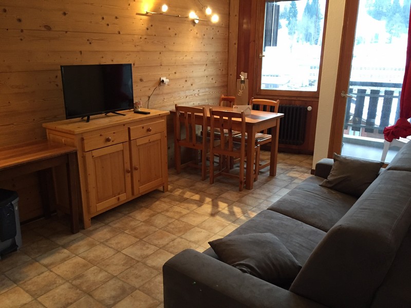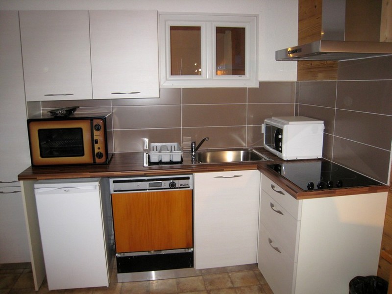 Entrée/Hall - Chambre 1 (7 m²): 2 Lits, fenêtre intérieure - Salle de bains : Baignoire, lavabo - wc - Chambre 2 (10,87 m²) : 1 Lit, placard, fenêtre sud et porte fenêtre accès balcon sud vue village - Séjour (13 m²) avec Coin salon: Canapé, télévision, porte fenêtre sud accès balcon avec vue sur le village - Coin repas : Table et chaises - Coin cuisine équipée: Four, micro-ondes, hotte, lave-vaisselle, réfrigérateur, plaque vitro-céramique, placards.