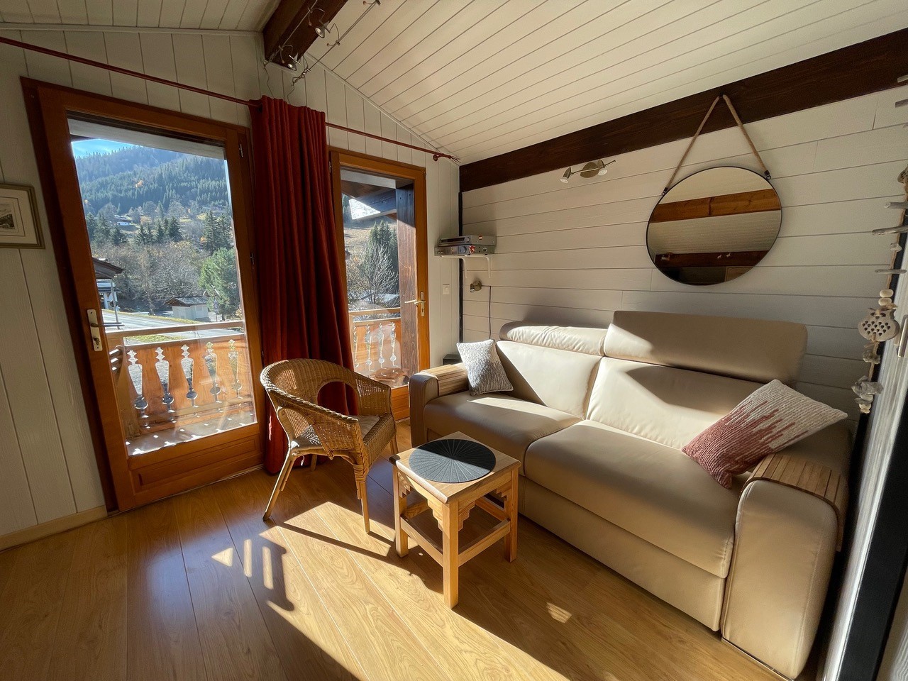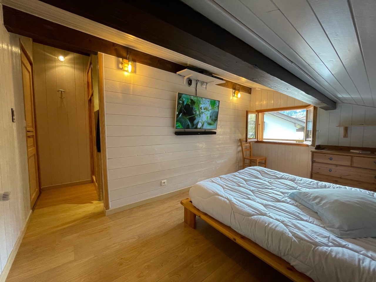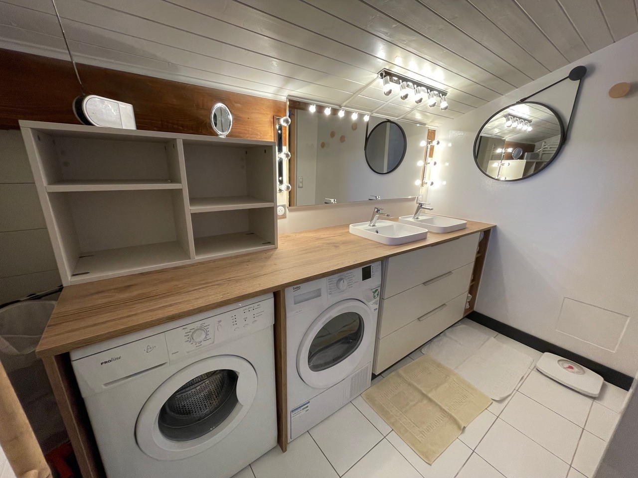 Entree/Hall - Sejour en partie mansarde (18 m2): Television murale, canape, table de salon, baie vitree acces sur un balcon sud avec vue sur l'Etale - Coin repas : Table et chaises - Coin cuisine equipee : Plaque induction 3 feux, lave-vaisselle, four, four micro-ondes, refrigerateur (100L), hotte, plan de travail, placards hauts et bas, evier - Salle de bains (7.50m2) : Douche a l'italienne, 2 vasques encastrees sur meuble de rangement, lave linge, seche linge - wc suspendu - fenetre - Chambre 1 en partie mansardee (11.90 m2) : Lit, fenetre, TV murale - Chambre 2 en partie mansardee (13 m2) : Lits, penderie