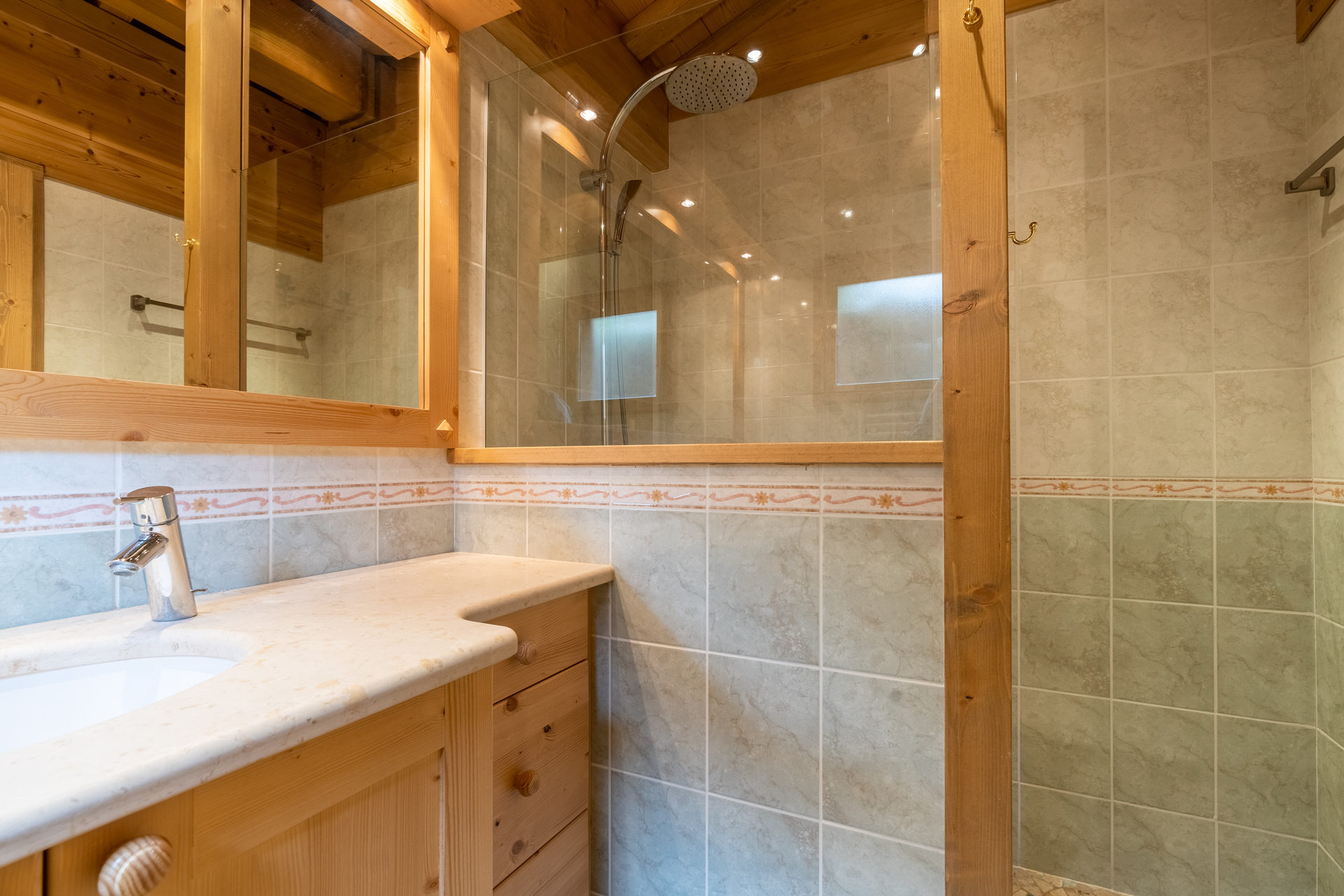 Etage rez de jardin : Placard penderie - 2 Chambres avec baie acces terrasse - Salle d'eau/WC (4.44m2): Douche, lavabo, wc, radiateur seche serviettes - Cabine/Chambre sans fenetre : Lit, commode
