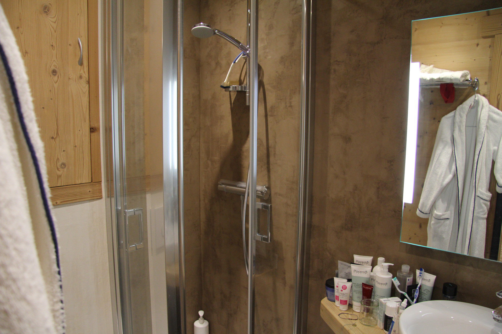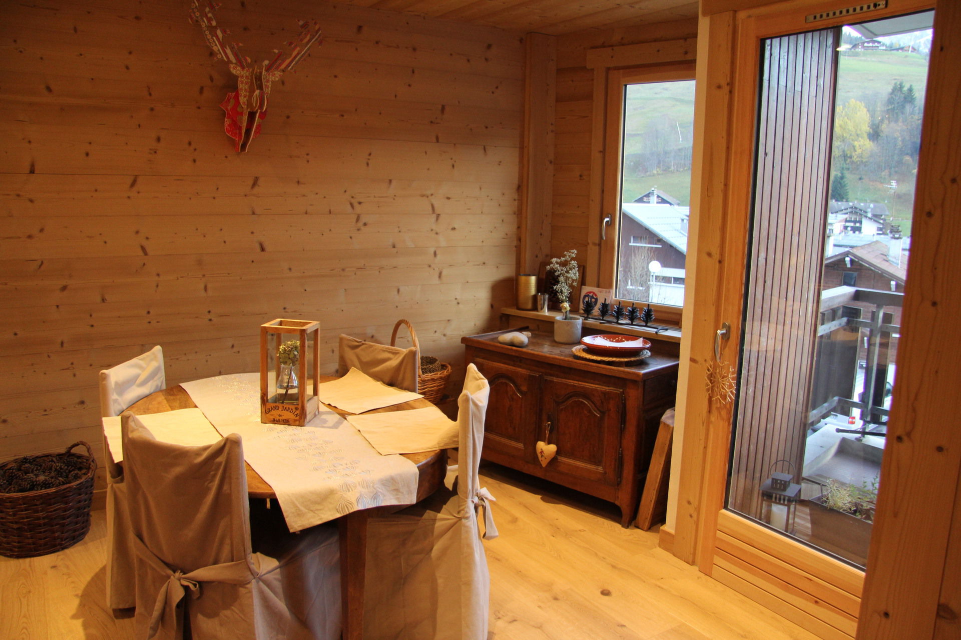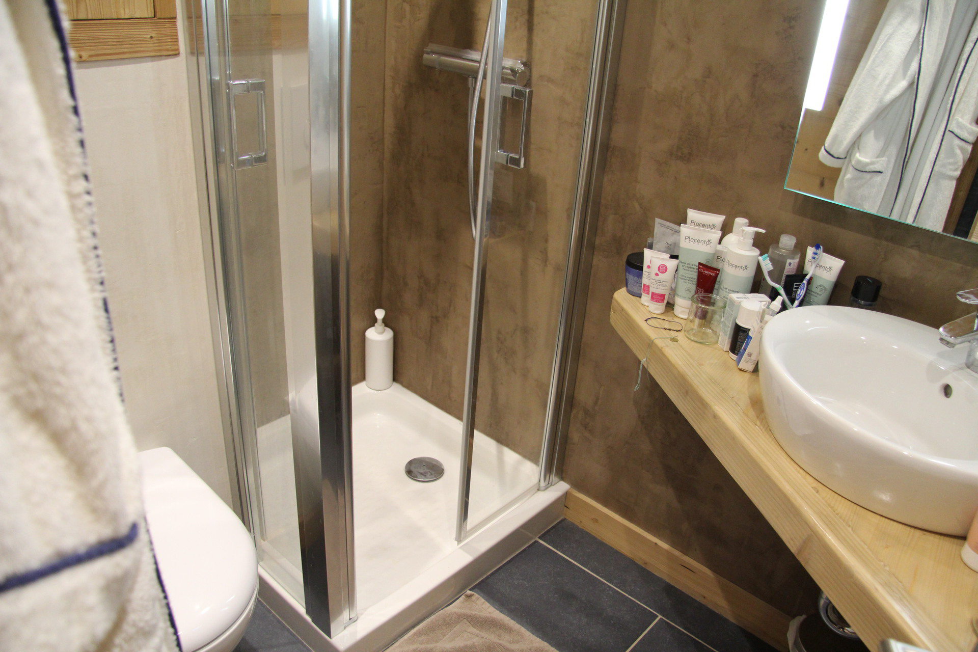 Entrée/Hall - Chambre 1 (10 m²) : Lit, penderie, placard (lave-linge – sèche-linge), fenêtre nord avec vue sur le bâtiment, salle d'eau attenante avec douche, lavabo et wc - Chambre 2 (9 m²) : Lit, porte fenêtre accès balcon et terrasse sud et ouest, vue sur le village et les pistes, penderie, TV, salle d'eau attenante avec douche, lavabo et wc - Coin nuit (9m²) : Lits, fenêtre ouest vue bâtiment, penderie, salle d'eau attenante avec douche à l'italienne, petit lavabo - Couloir avec penderie desservant : WC - Grand Séjour (25 m²) avec Coin salon : Canapé, fauteuils, table de salon, coin feu avec Poêle, TV, porte fenêtre accès balcon sud avec vue sur le village et les pistes - Coin repas : Table et chaises - Coin cuisine équipée : Four, micro-ondes, lave-vaisselle, réfrigérateur, plaque induction 3 feux, Cafetière Nespresso, porte fenêtre accès balcon sud avec vue sur le village et les pistes.