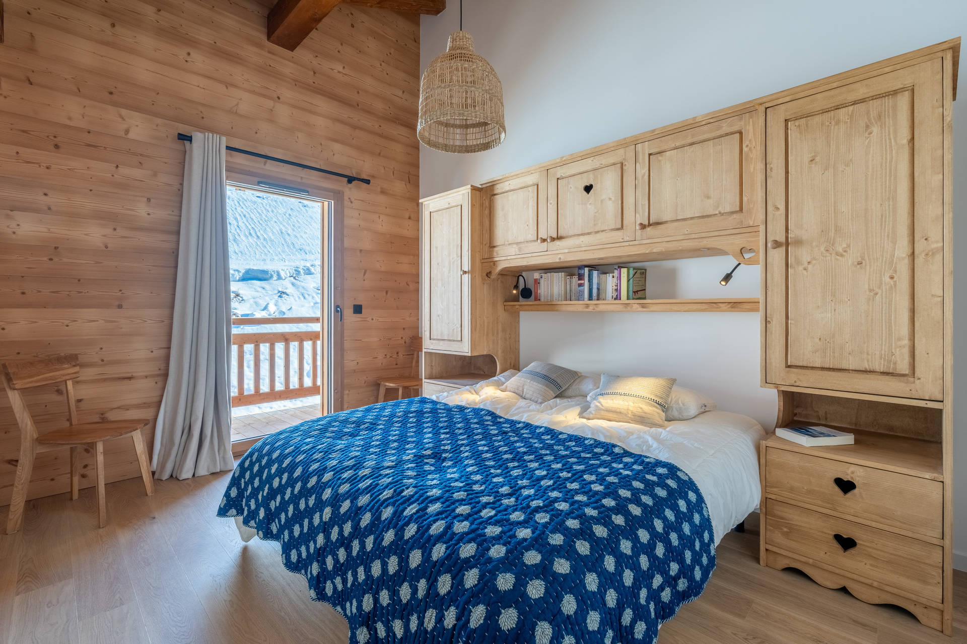 Demi-chalet "MATIDI" de 105.05m2 sur 3 niveaux, livre en decembre 2024. Pour 8 a 10 personnes - 3 chambres et 1 cabine +1 garage et 1 place de parking privative - Orientation Ouest - Terrasse et balcon.
