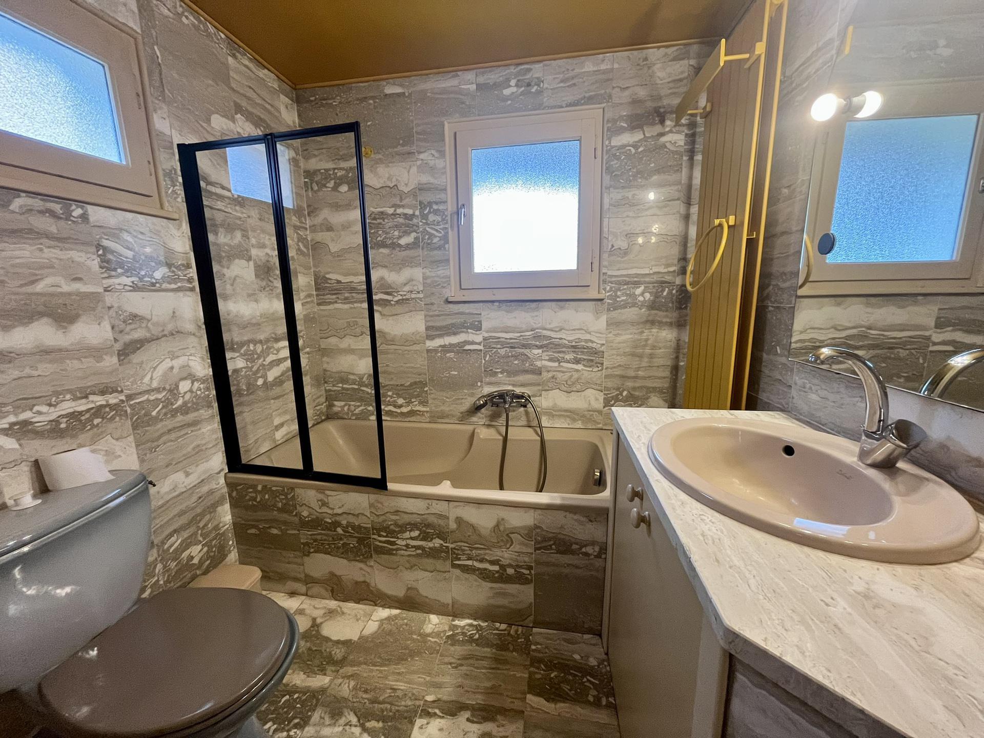 Chambre 1 : lit double 160 cm, fenetre Est, rangements. - Salle de bain (7.76 m2) : baignoire, meuble vasque - wc separe.