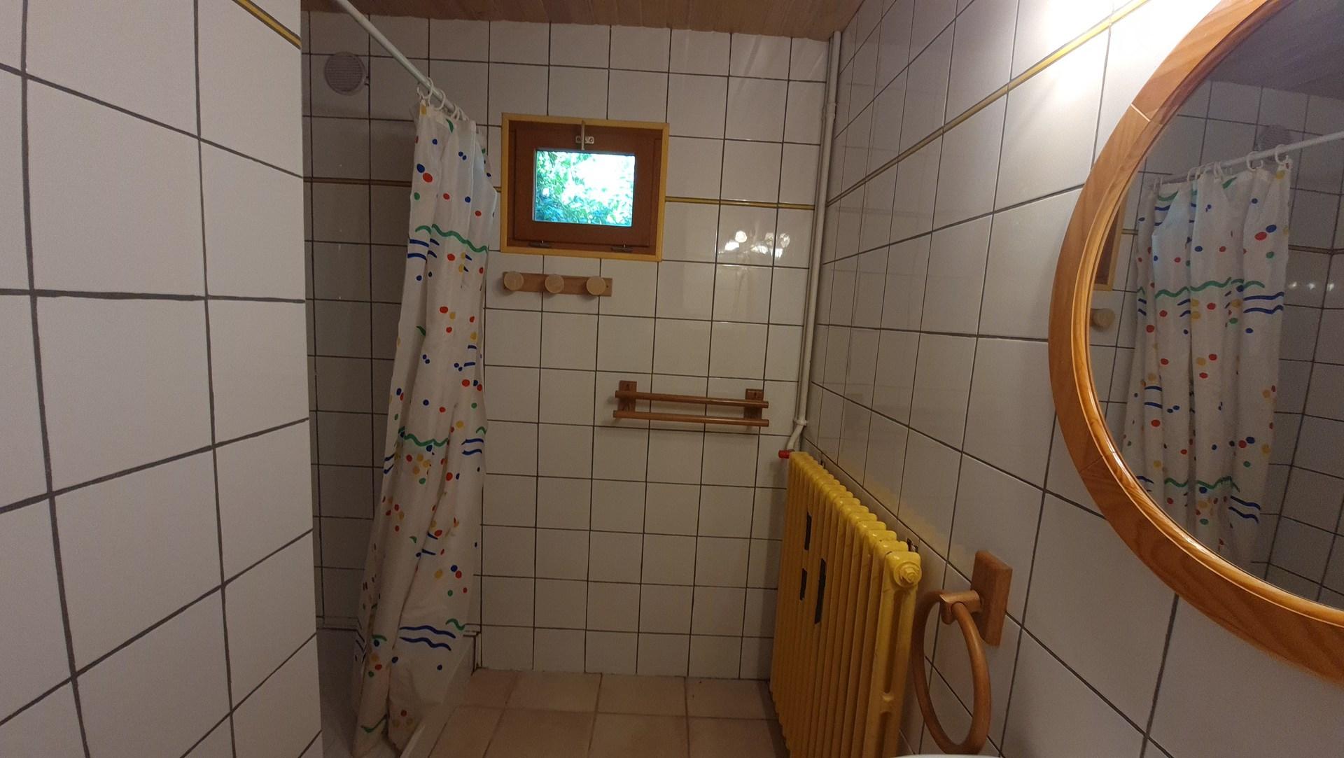 ETAGE INFERIEUR : acces au rez de jardin par un escalier - Hall / Couloir qui dessert les 2 chambres - Salle d'eau : douche, meuble vasque - WC : independant - Chambre 3 : 3 lits simples 90 cm, fenetre sud - Buanderie : lave linge, seche linge, etendage a linge, lavabo.