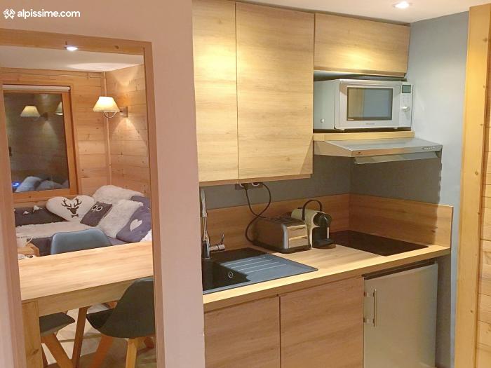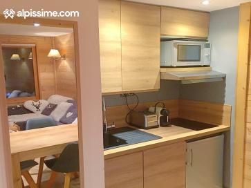 2 pièces + coin montagne fermé (28 m2), situé dans un petit immeuble du Hameau de Mottaret, au calme et à proximité immédiate de tous commerces, des transports, et un accès direct aux pistes.