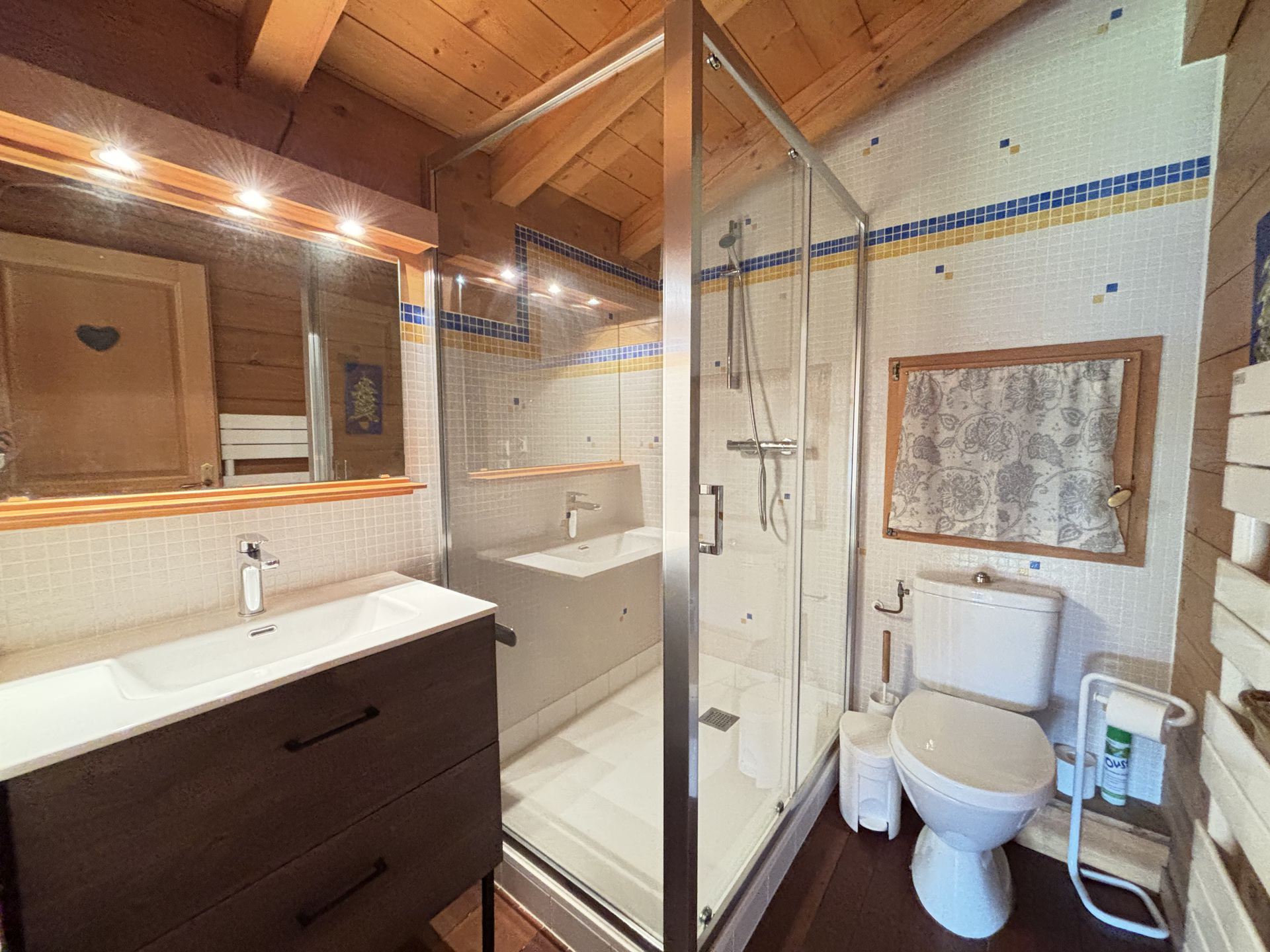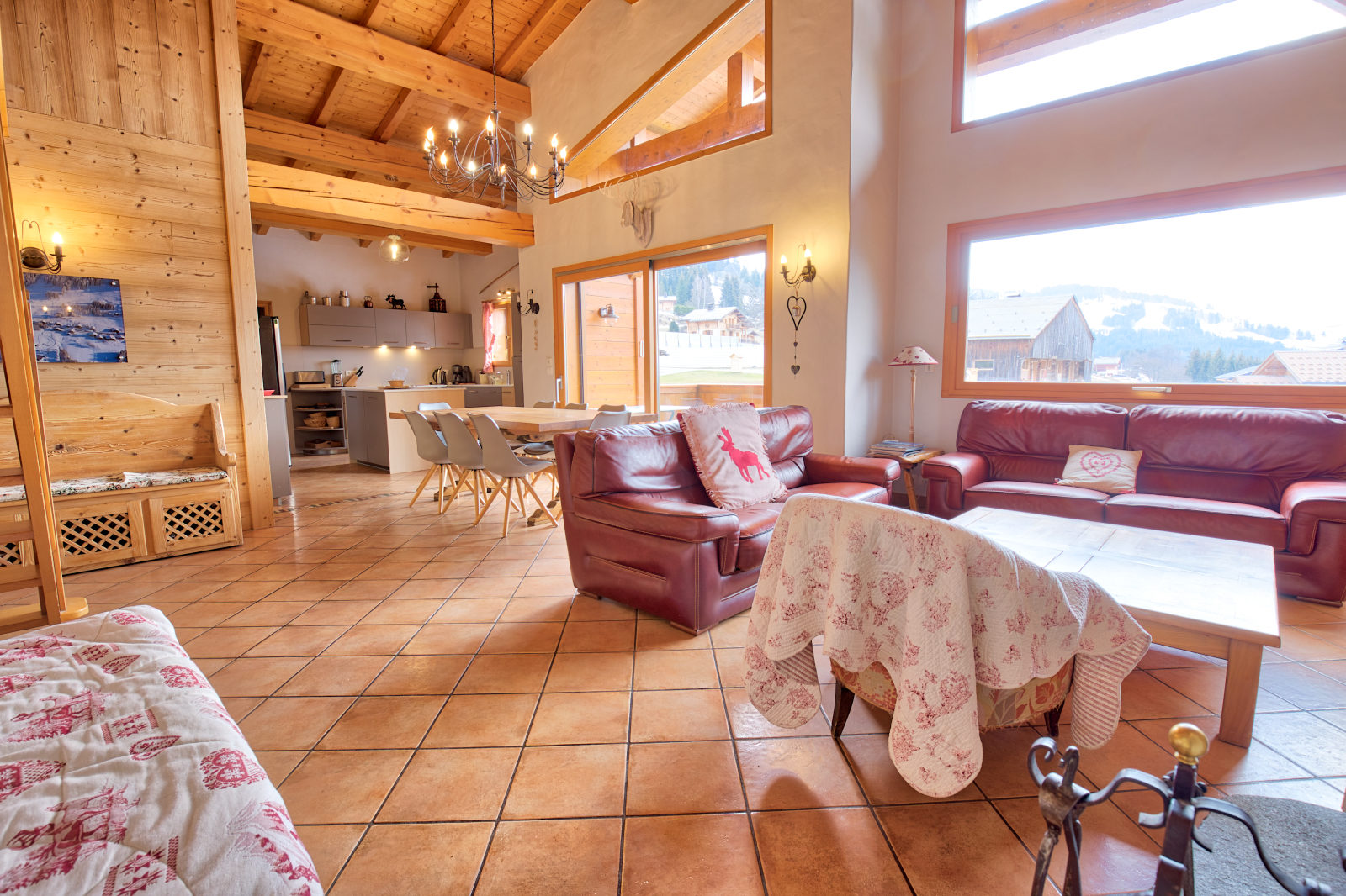 Ce magnifique duplex de sept pieces, pouvant accueillir 10 a 12 personnes, s'etend sur 135 m2 au 2e etage d'une petite copropriete. Vous apprecierez particulierement son balcon-terrasse de 18 m2 oriente sud-ouest, offrant une vue imprenable sur le Mont Charvin et les montagnes alentours.