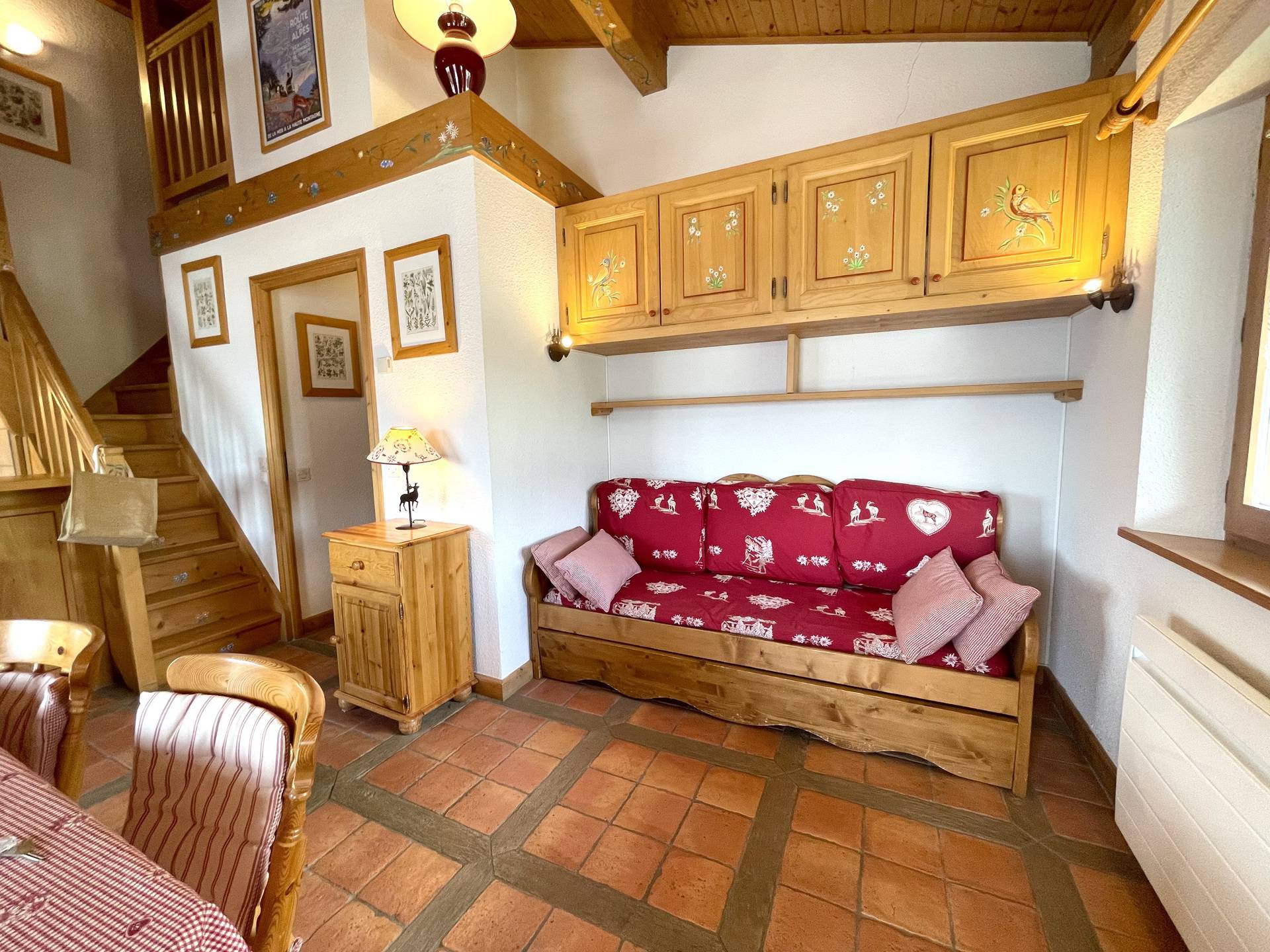 Duplex au coeur d'un village typique du Val d'Arly avec une surface de 34m2 et 17m2 inferieur a 1.80m. Au deuxieme etage d'une residence offrant une tres belle vue sur le village et le Mont Charvin, vous apprecierez son balcon SUD/EST.