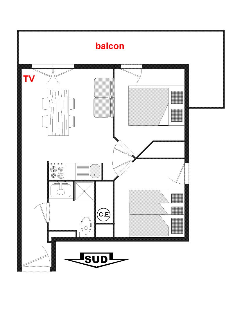 - Sejour avec canape non convertible, TV ecran plat.