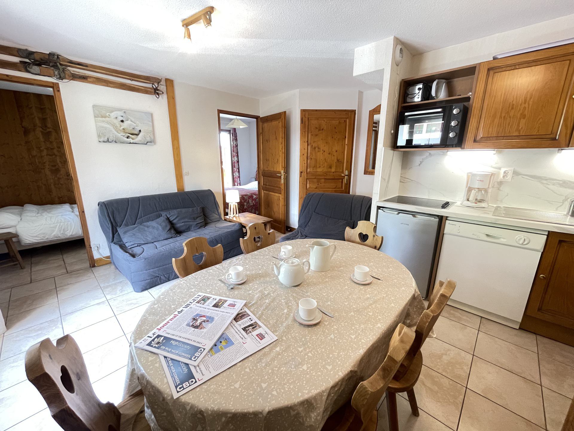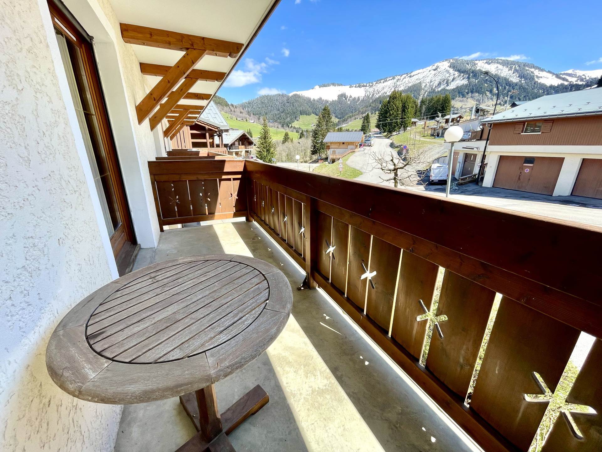 Appartement de 40m2 au pied des pistes du Mont Rond, de trois pieces pour six personnes, au premier etage, balcon SUD vue sur les pistes et balcon OUEST vue sur le Mont Charvin et la vallee.
