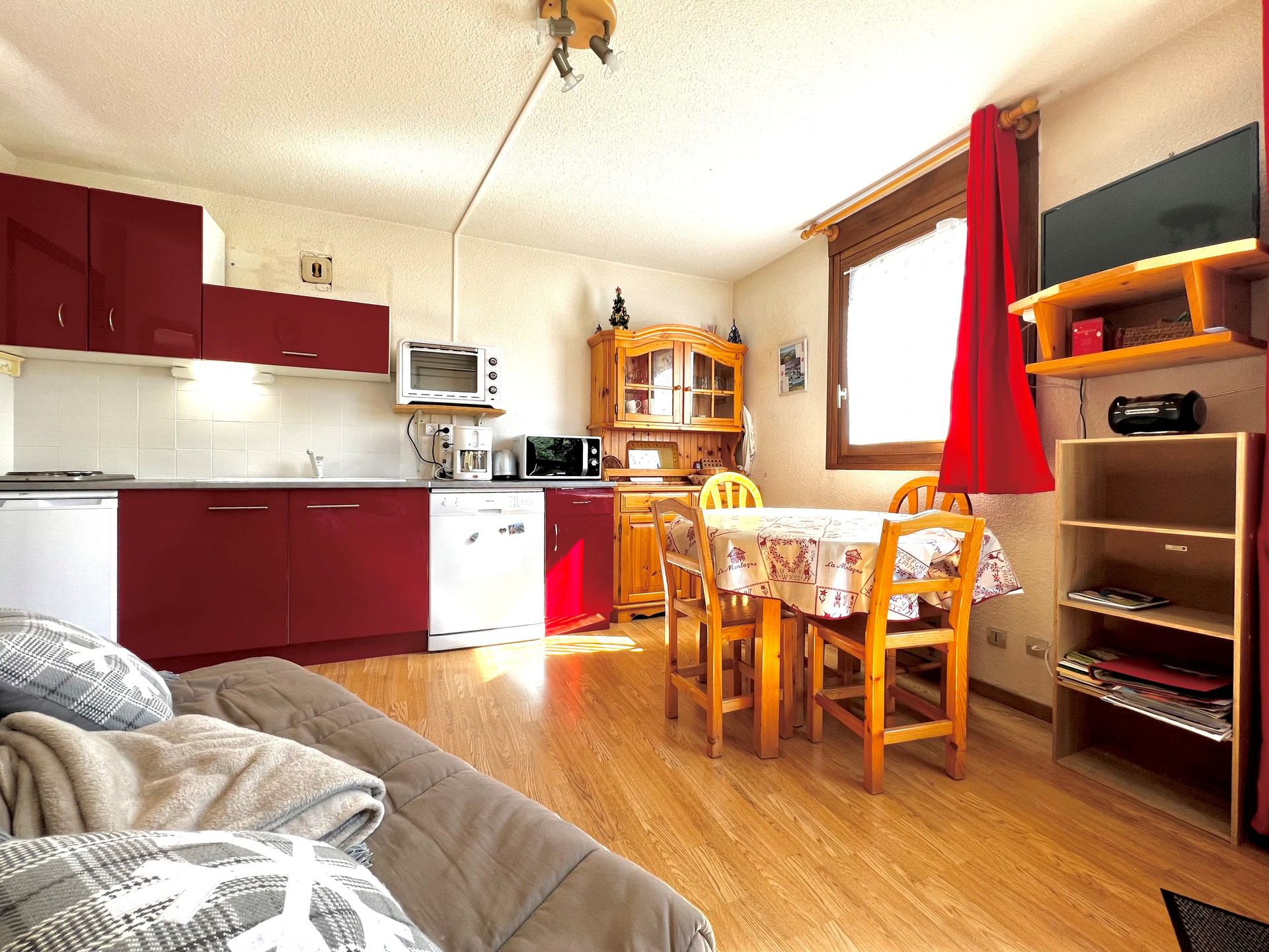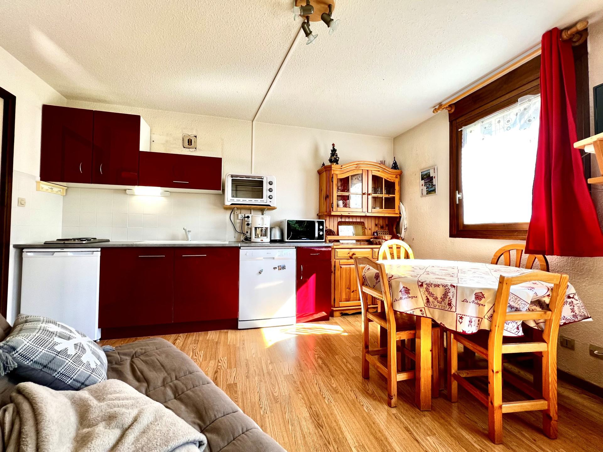 Appartement deux pièces cabine d'une surface de 28m² avec balcon sud-ouest offrant une vue sur le Mont Charvin et la vallée. Situé dans le village de Notre Dame de Bellecombe, toutes les commodités sont accessibles à pieds, l'aire de jeux est à 100m ainsi que l'arrêt de ski bus.