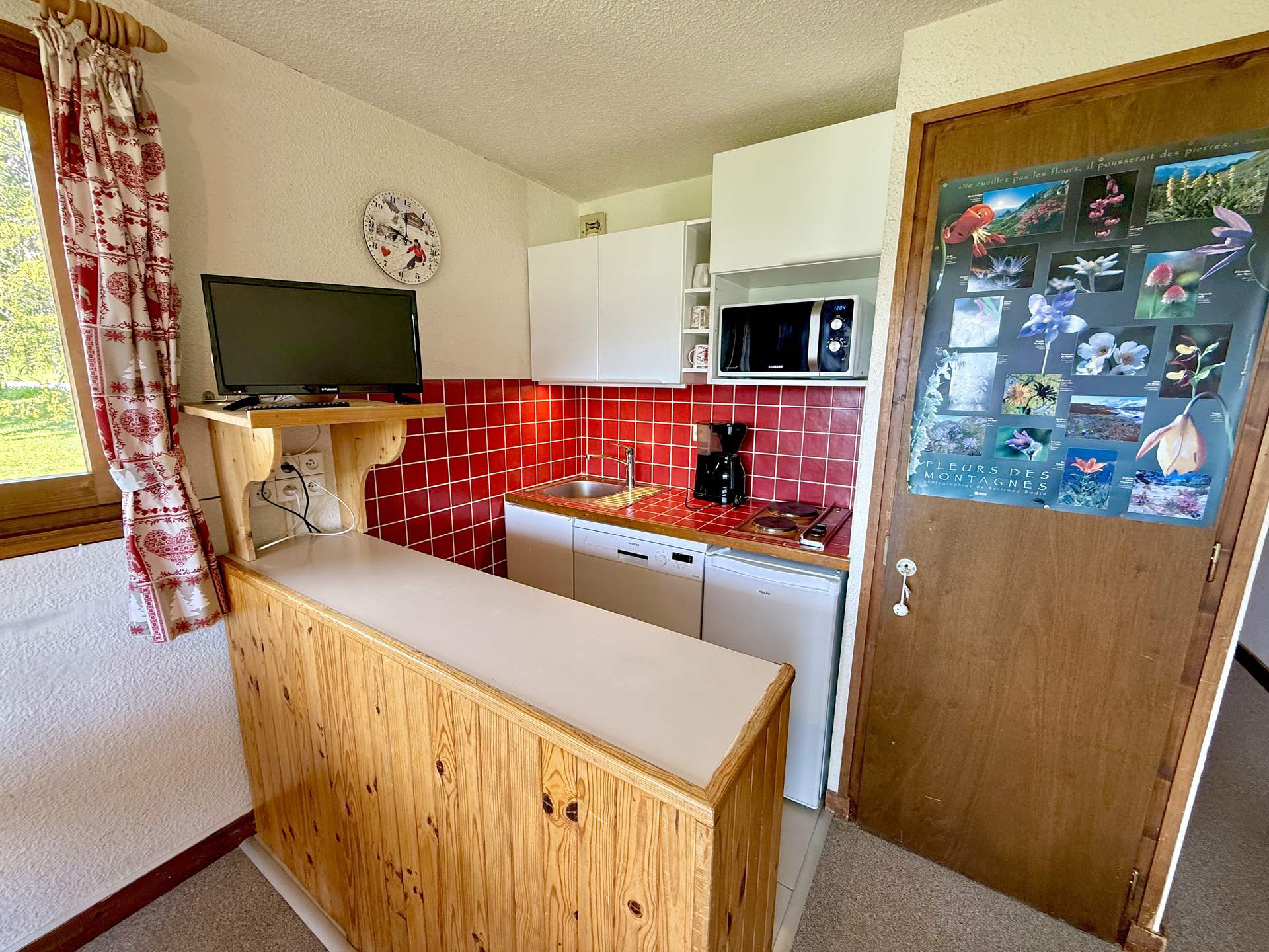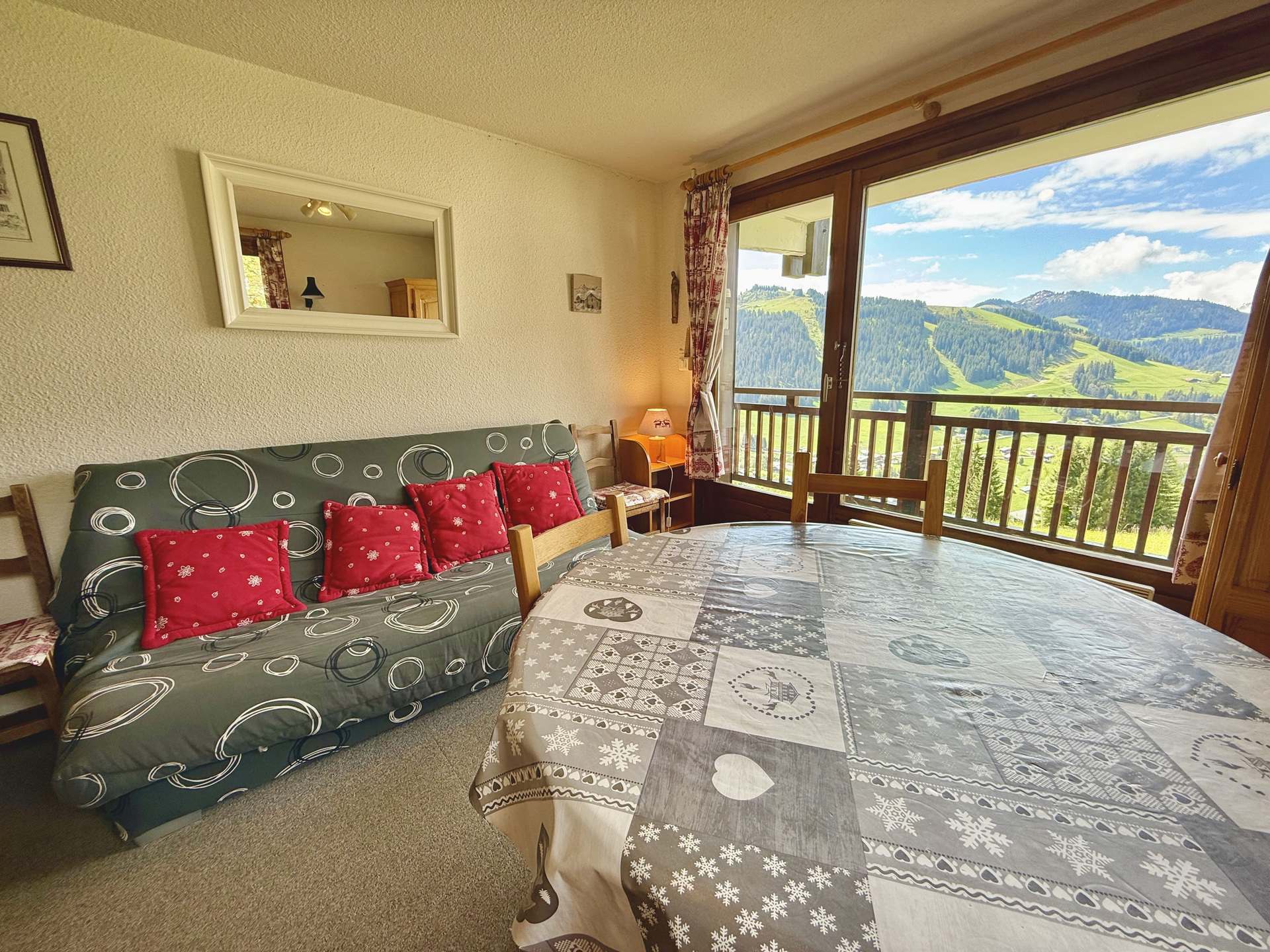 Au sommet du Mont Lachat, a cote de la piste de liaison, avec des commerces de proximite, appartement pour six voyageurs d'une surface de 34m2. Situe en rez de chaussee de la residence, vous allez adorer la vue exceptionnelle sur la vallee et le massif du Mont Rond depuis son balcon sud.
