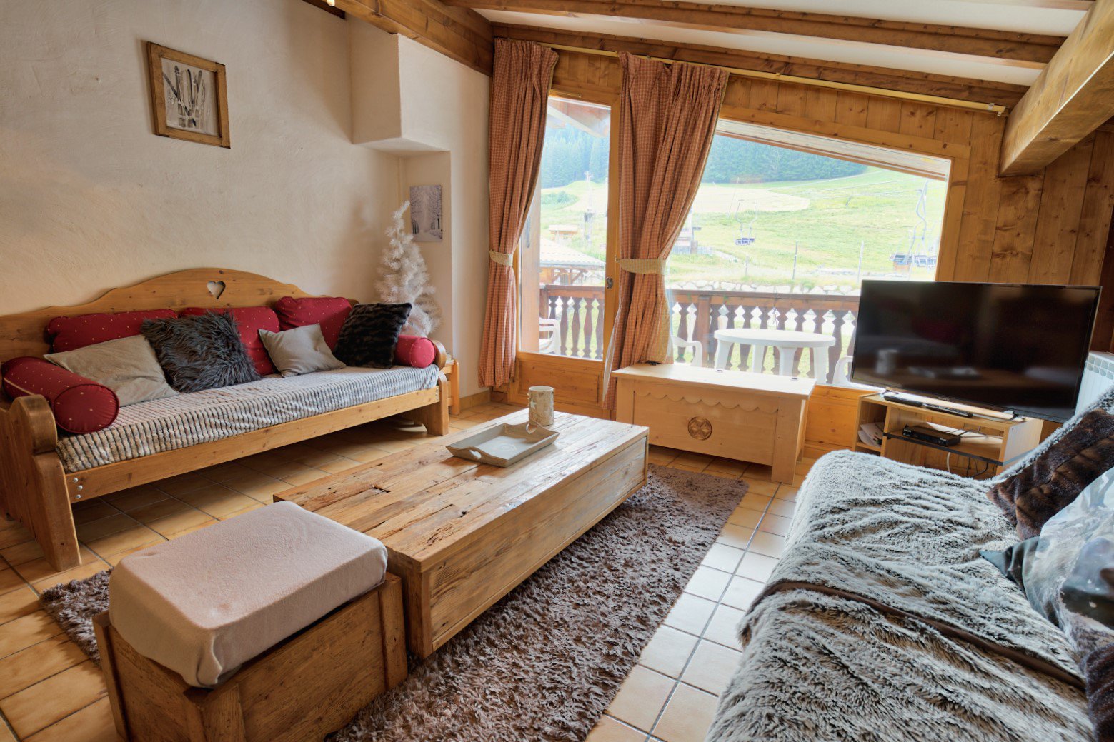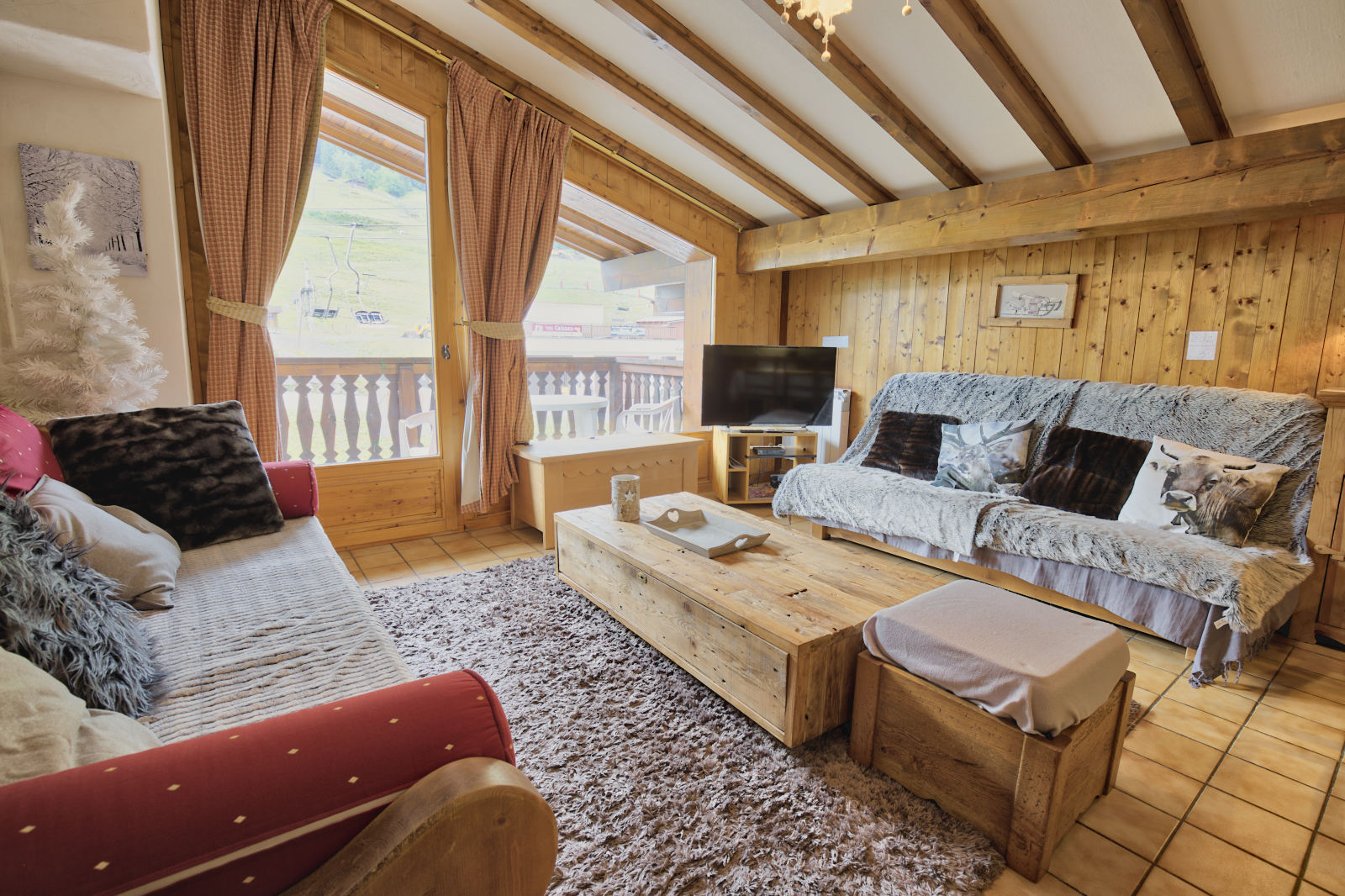 Avec son balcon exposé au Sud et sa vue sur les pistes de l'Espace Diamant et les montagnes alentours.