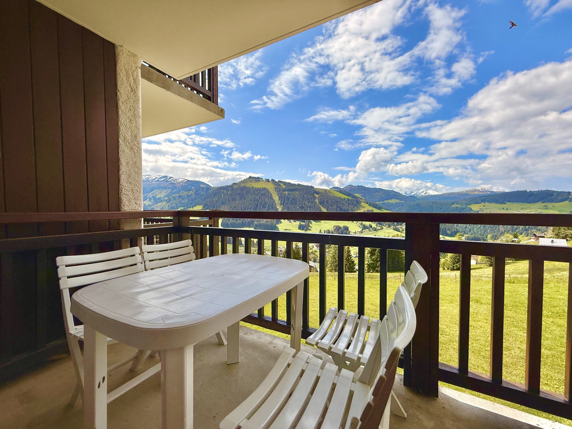Studio de 20m2 pour quatre personnes, en rez de chaussee avec un balcon SUD et une vue exceptionnelle sur la vallee et le massif du Mont Rond.